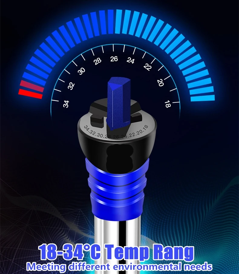 -- Диапазон температур 18-34 °C, высокая точность, подходит для большинства рыб, отвечает различным экологическим потребностям.