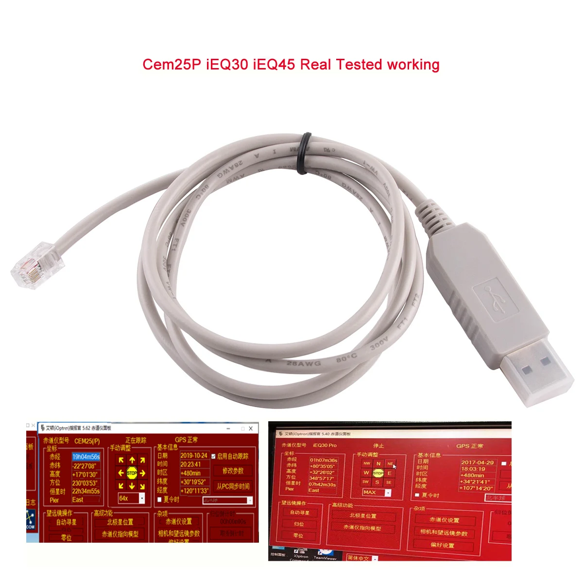 Кабель управления последовательным кабелем USB к RJ9 4P4C RS232 для Экваториального телескопа Ioptron IEQ30 Cem25 CEM60 IEQ45 Smart EQ Pro Skyx