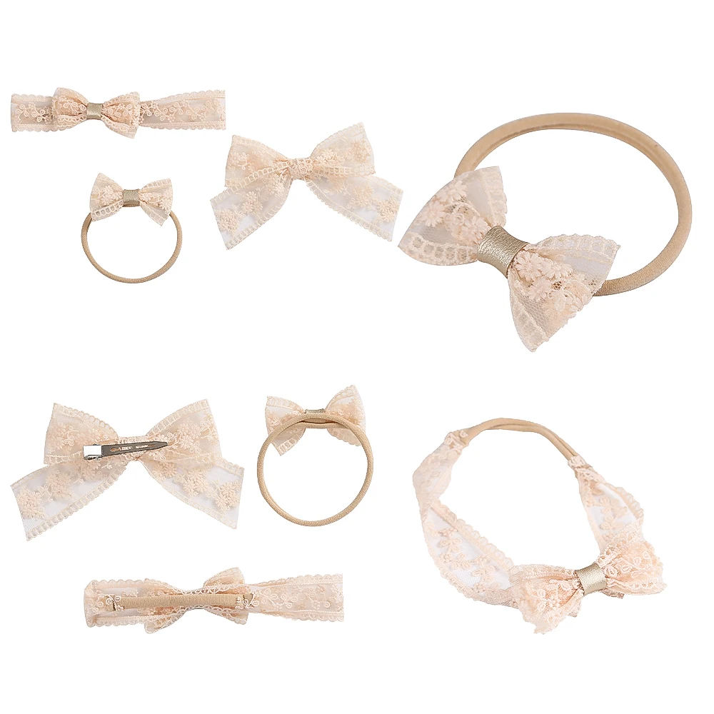 Милые кружевные банты, Детская повязка на голову, эластичные резинки для волос для девочек, заколки для волос с полым бантом, Детские аксессуары для волос
