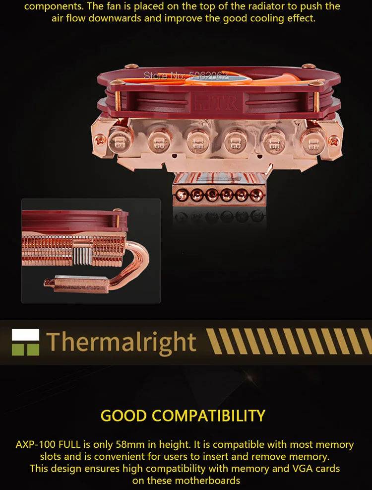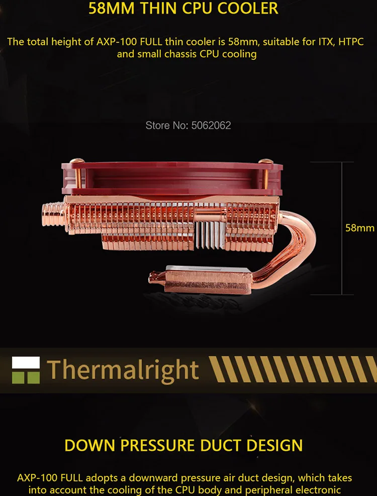 Полностью медный радиатор Thermalright AXP100, высота 58 мм, TDP 18...