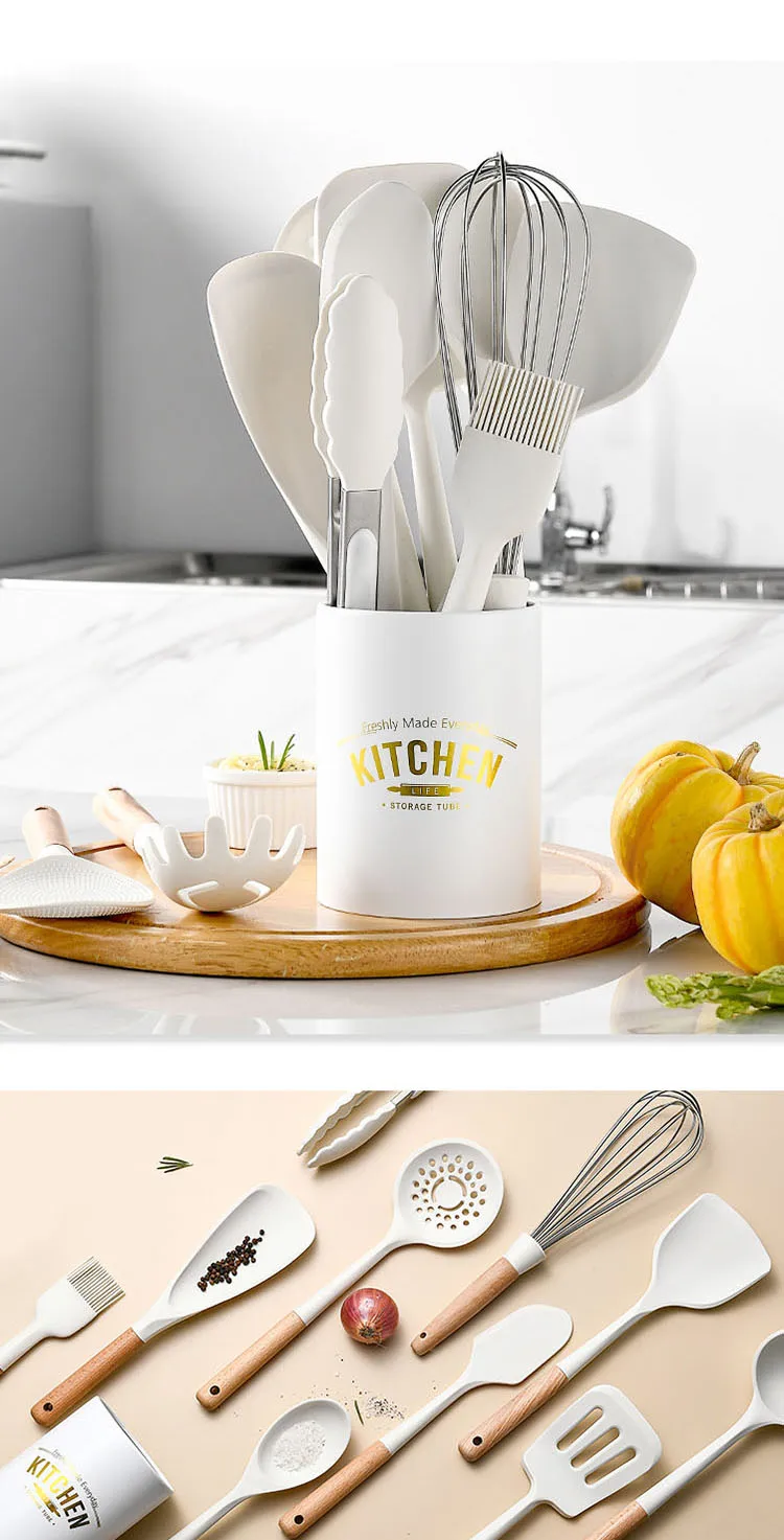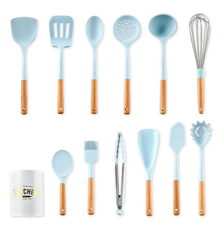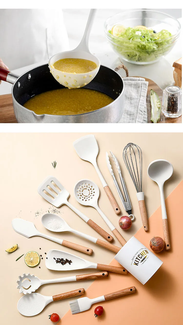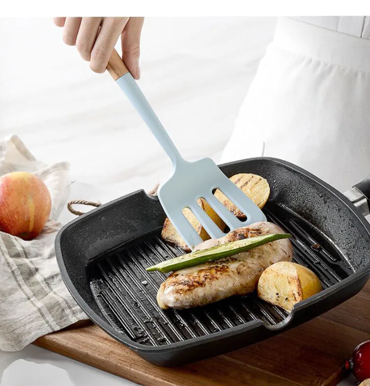 Пищевой силиконовый инструмент для приготовления пищи кухонная необходимая антиобжигающая посуда с деревянными ручками ложка-Лопатка дуршлаг венчик бытовой