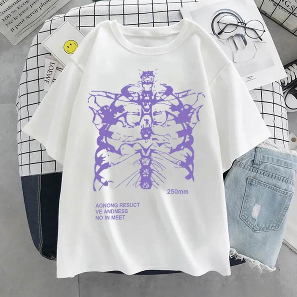 Футболка женская с коротким рукавом, уличная одежда в стиле хип-хоп, винтажная одежда в стиле Харадзюку, топ с принтом скелета в стиле панк, готический Топ оверсайз, на лето
