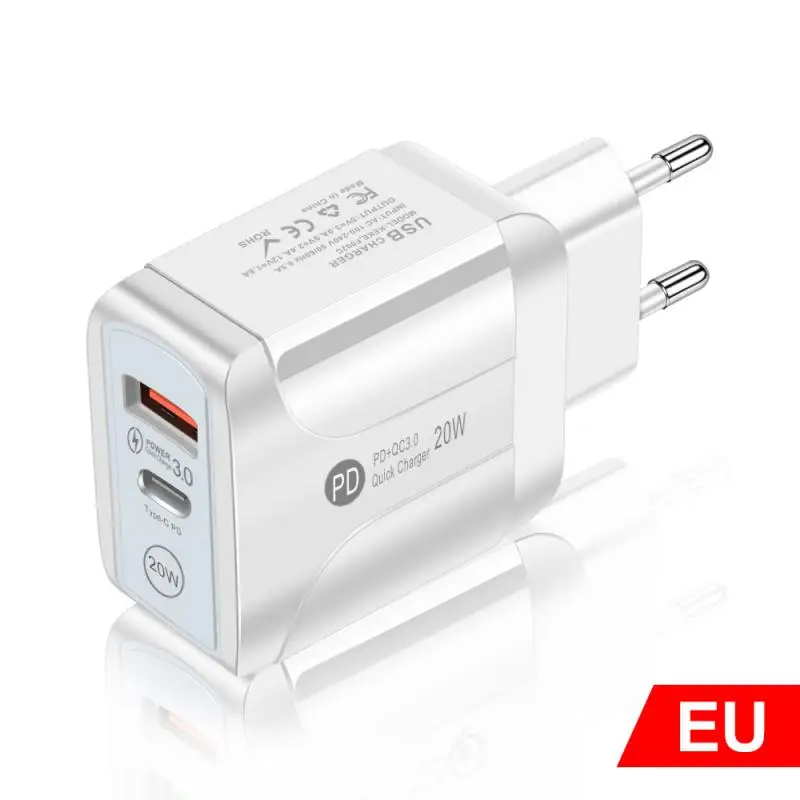 Сетевое зарядное устройство PD, 20 Вт, USB C, QC 3,0, 2 порта, светодиодный индикатор для быстрой зарядки телефона, настенный адаптер для IPhone 12, 11 AirPods, IPad, Huawei, Xiaomi, Samsung