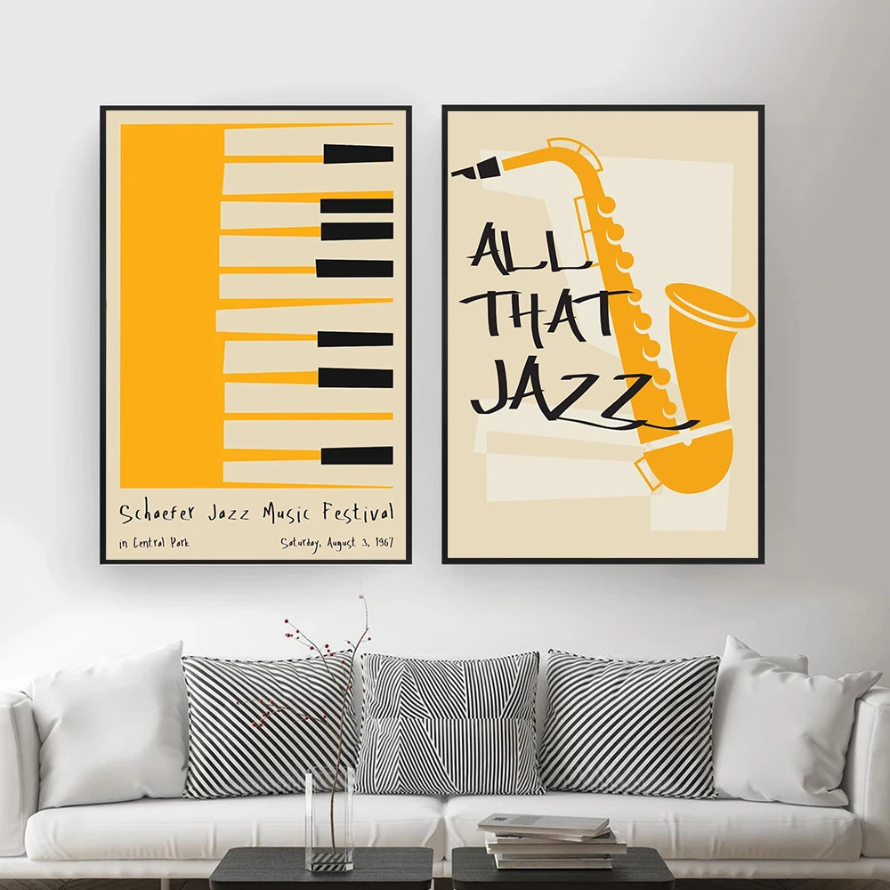 Настенные художественные плакаты в стиле ретро с изображением музыкальных инструментов, галереи, джазовой гитары, пианино, декоративные картины для гостиной