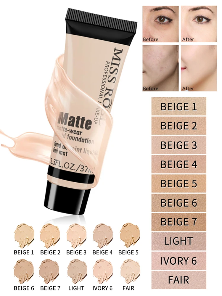 Профессиональный консилер Miss Rose, Жидкая основа для макияжа, крем, Обложка, консилер для темной тяжелой кожи, увлажняющий макияж
