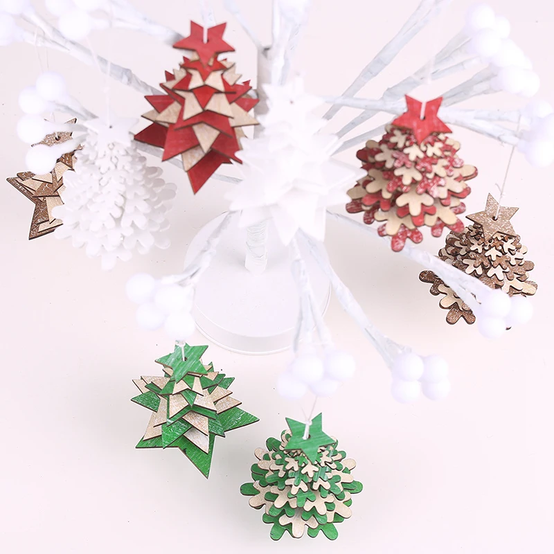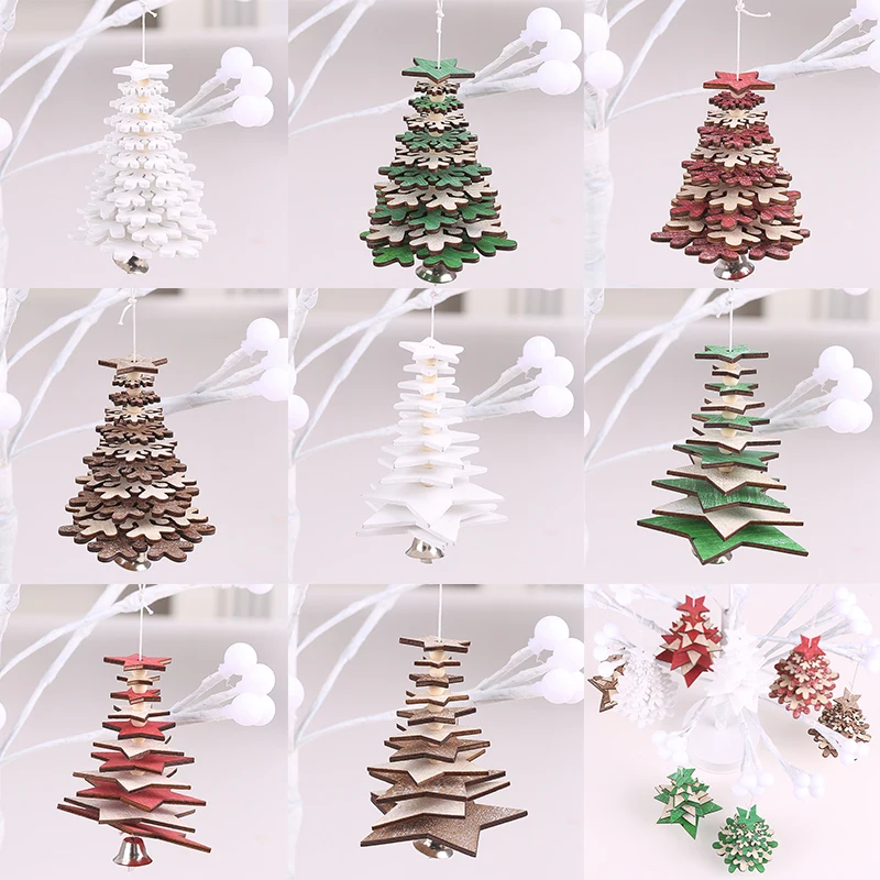 3D деревянные украшения для рождественской елки, подвесные рождественские украшения для вечерние, подвески сделай сам, рождественские подвесные украшения для дома