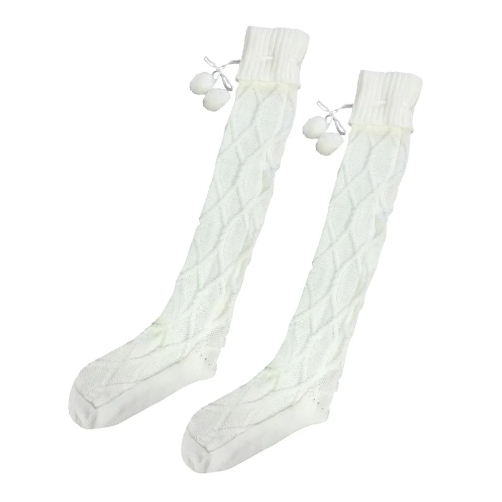 Женские зимние вязаные Гольфы выше колена с помпоном на шнурке, теп...