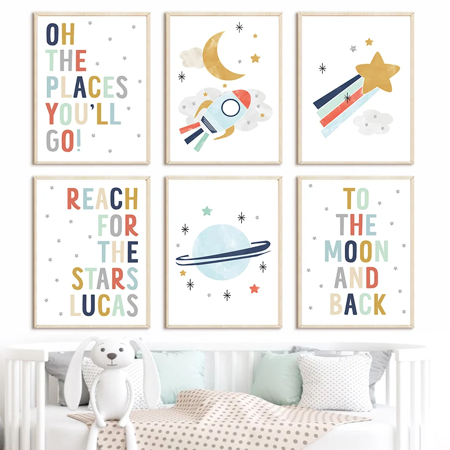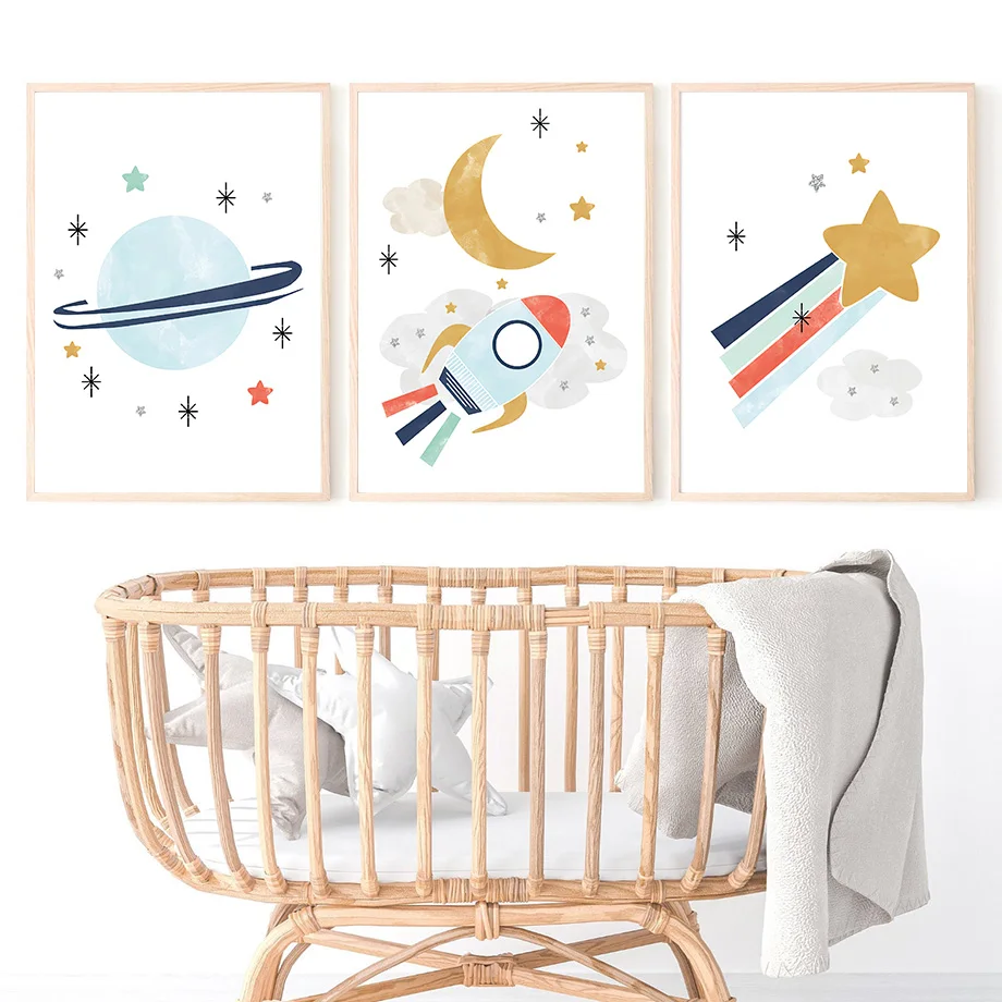 Астронавт Космос ракета планет мультфильм детская комната скандинав...