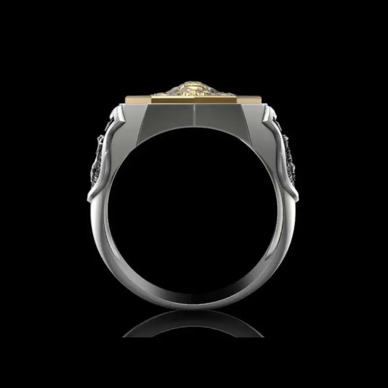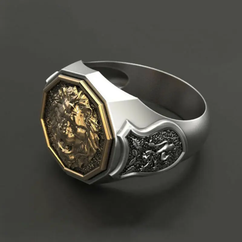 Кольцо мужское цельное Платиновое, золотое, с изображением Льва