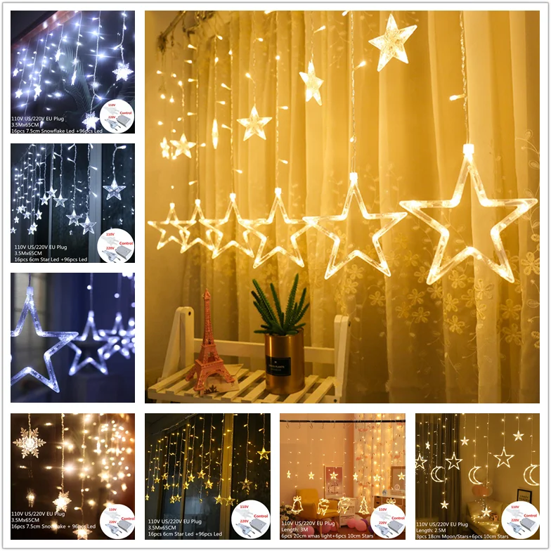 Рождественская гирлянда 2021, световая занавеска со звездами, свети...