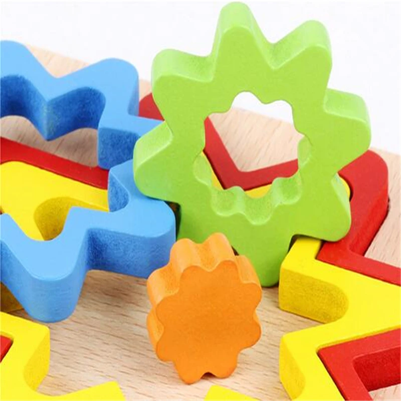 Разноцветные деревянные игрушки головоломка Монтессори фигур, Детск...
