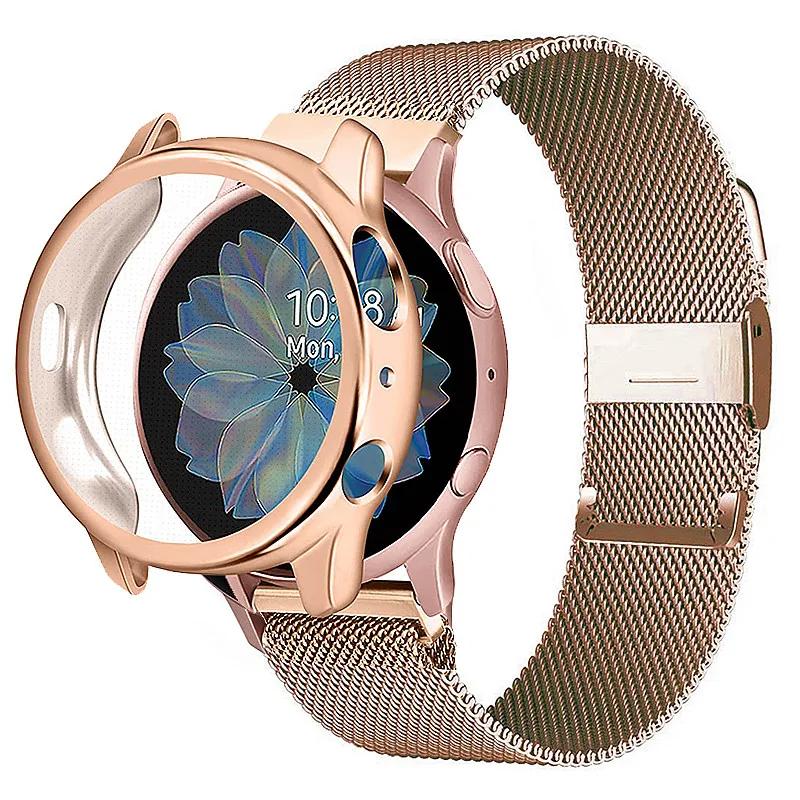 Ремешок для Samsung Galaxy Watch Active, защитный чехол, пленка для Samsung Galaxy Watch Active 2, 40 мм, 44 мм, металлический браслет