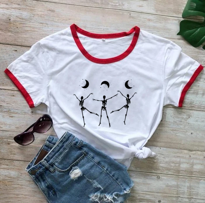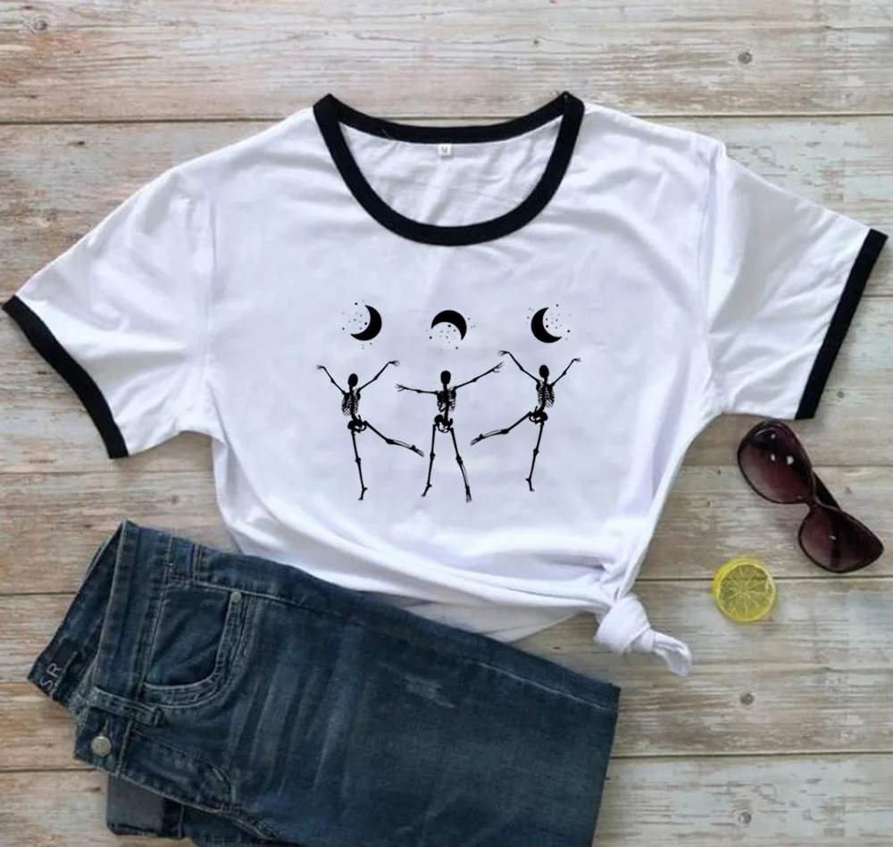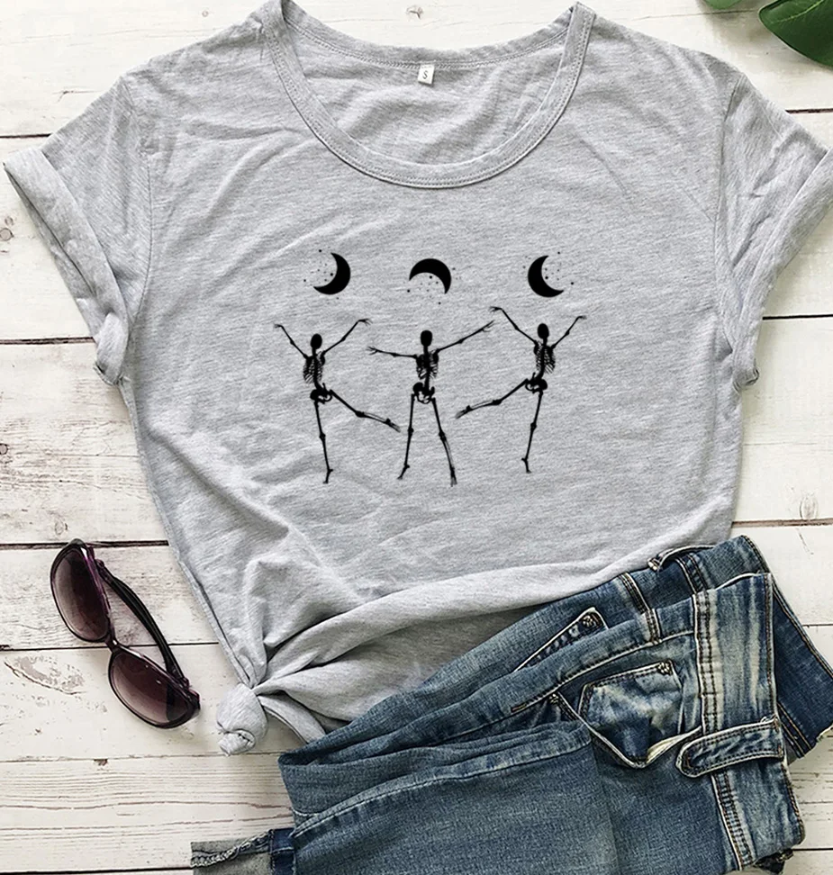 Футболка унисекс, из 100% хлопка, с рисунком скелетов, танцев под луной, в готическом стиле