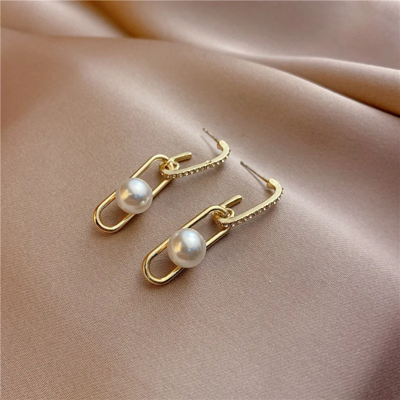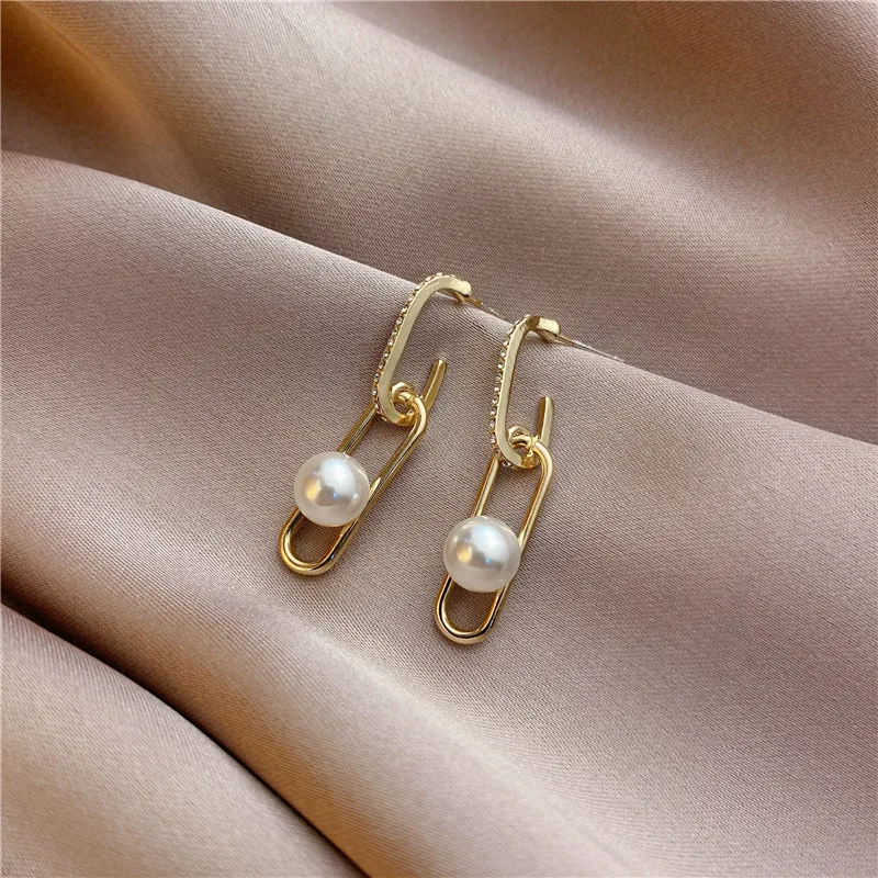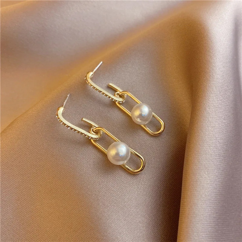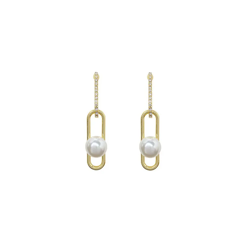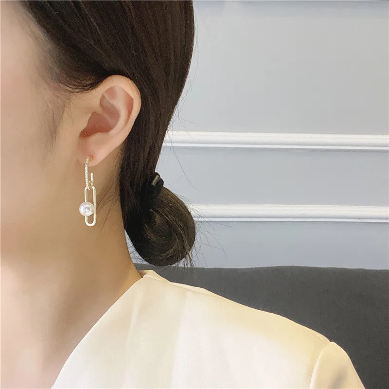 Серьги женские Геометрические с искусственным жемчугом, на цепочке, модные корейские драгоценности, 2021