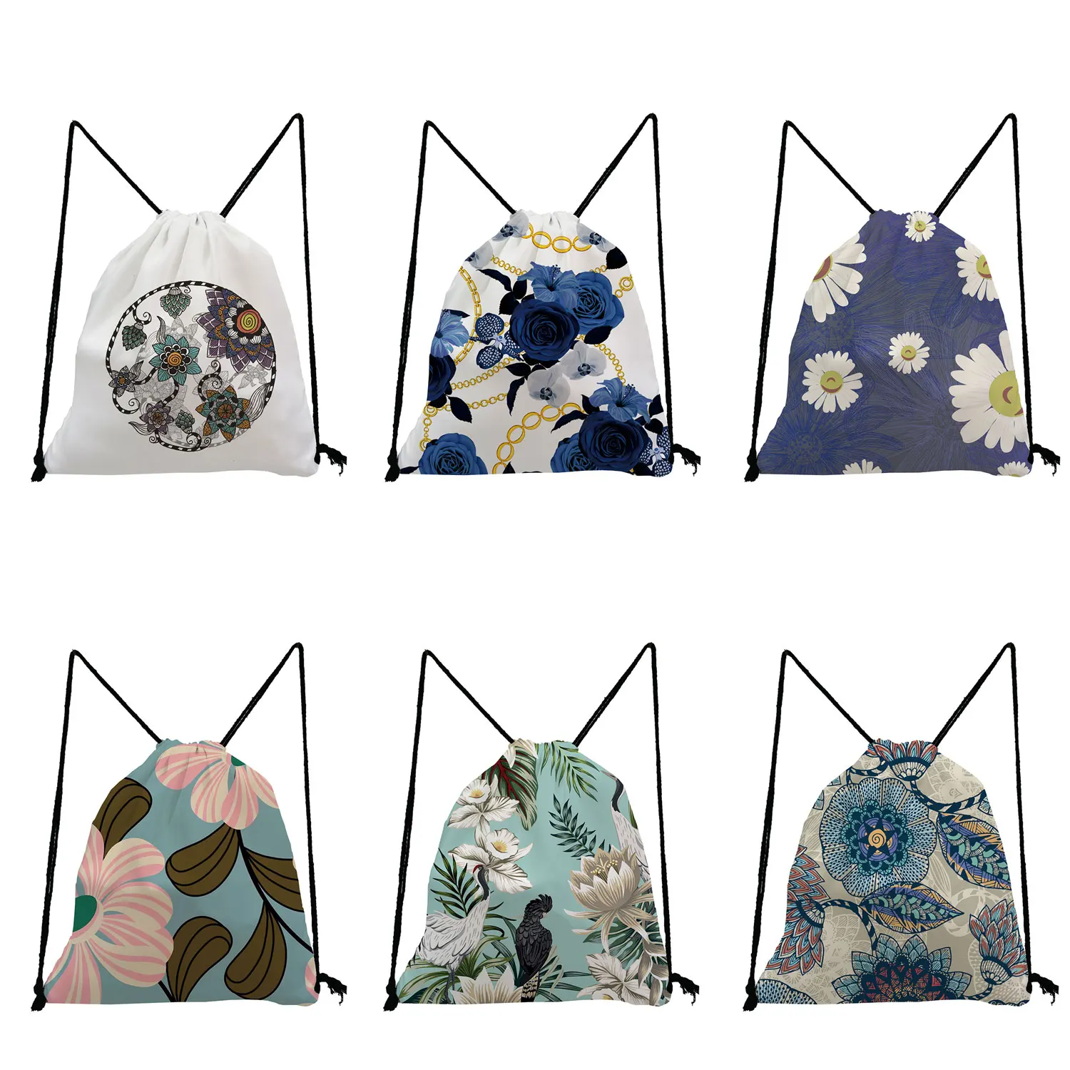 Рюкзак унисекс с цветочным принтом на шнурке, спортивная сумка для спортзала, многоразовая сумка для женщин, йоги, плавания, путешествий, хранения, детская школьная сумка