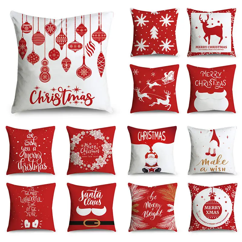 Рождественская наволочка WZH с красным мультяшным рисунком, арт-деко, наволочка для дивана, домашний Рождественский подарок, 45 см * 45 см