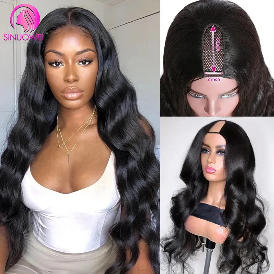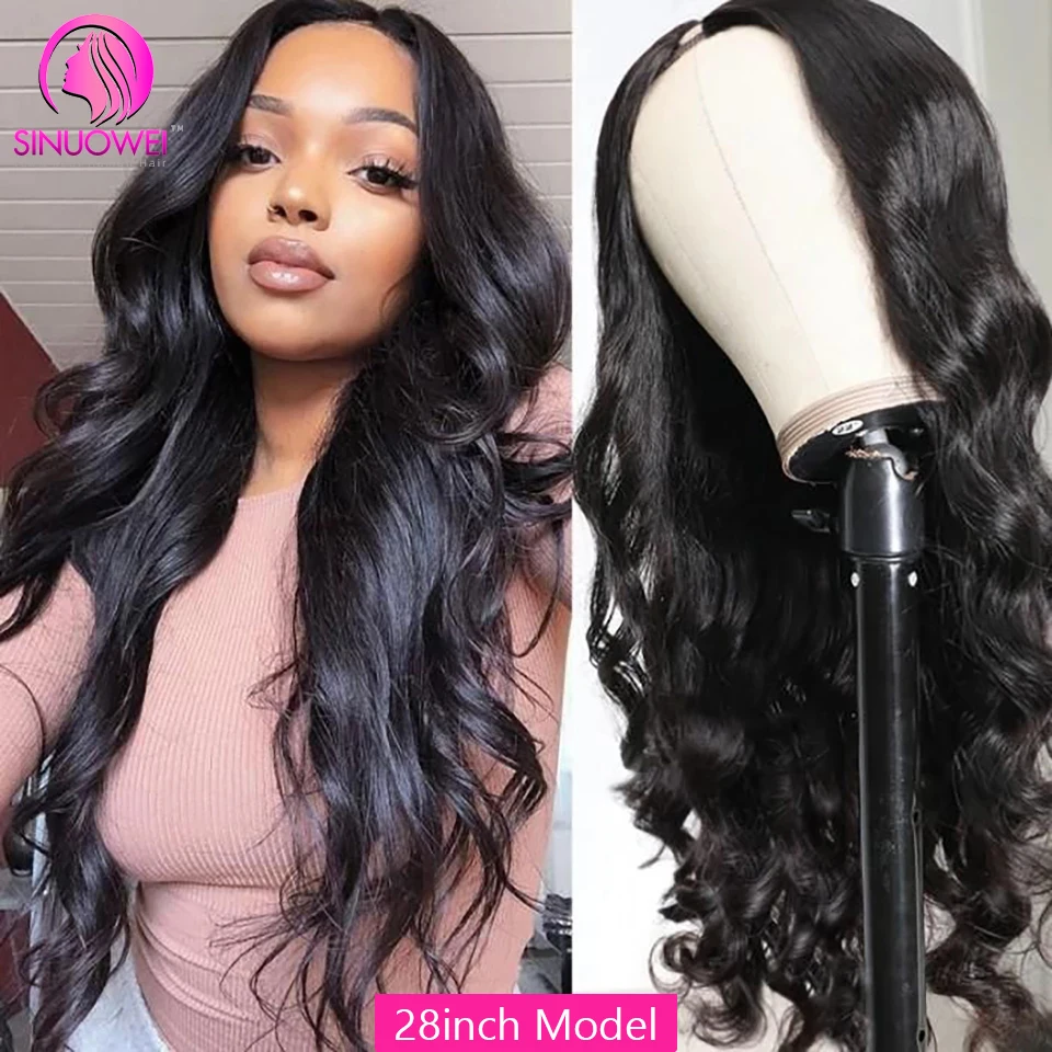 Парики из человеческих волос Sinuowei U Part, бразильские волнистые натуральные волнистые человеческие волосы, парики для женщин, 130% дышащие парики из человеческих волос