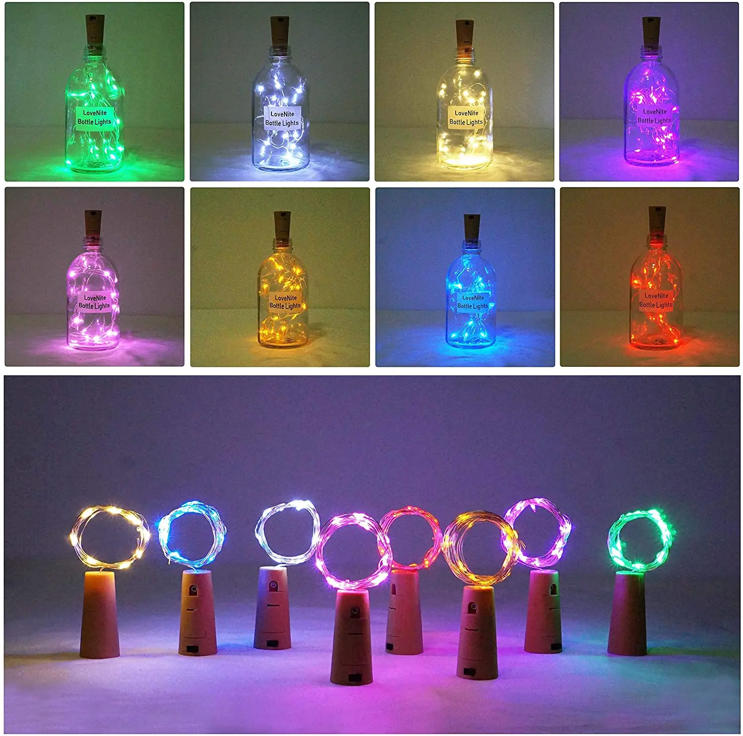 Гирлянда светодиодная с пробкой, 20 светодиодов, для вечерние ринки, свадьбы, Рождества, Хэллоуина, бара, комнаты, сада
