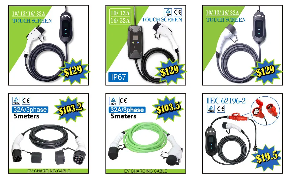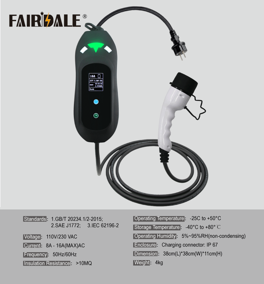 • Зарядный ток: 8A/10A/13A/16A регулируемый. (В следующий раз он будет заряжать ваш автомобиль тем же током.)