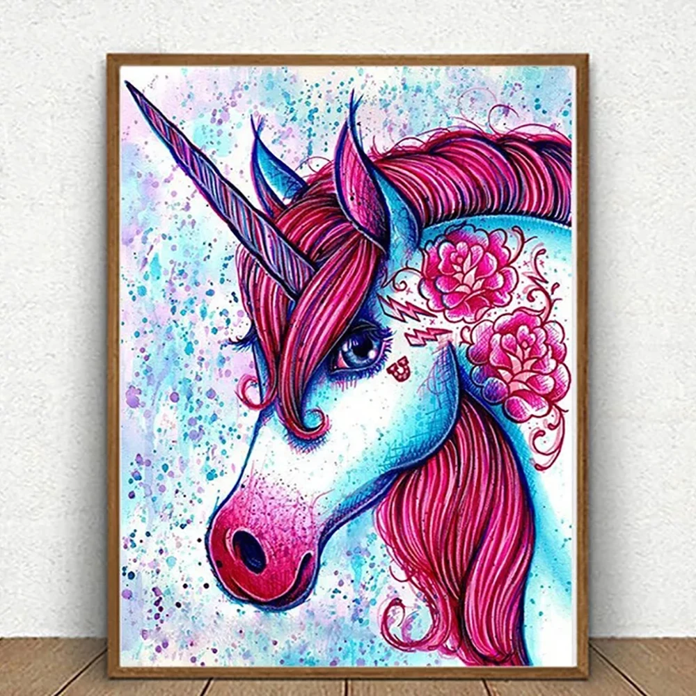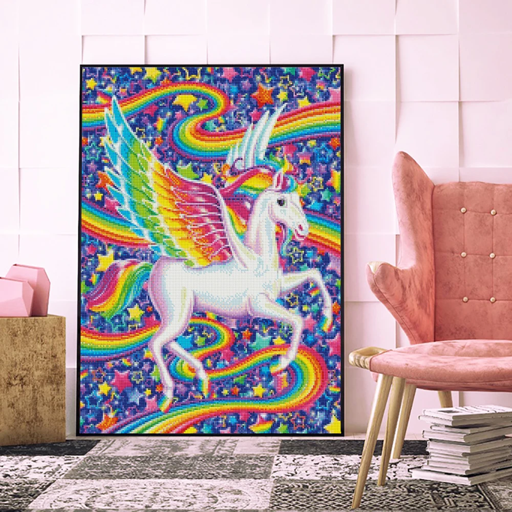Алмазная 5D картина сделай сам, полноразмернаякруглая мозаика мультяшный Единорог, вышивка крестиком, украшение для дома, детские игрушки