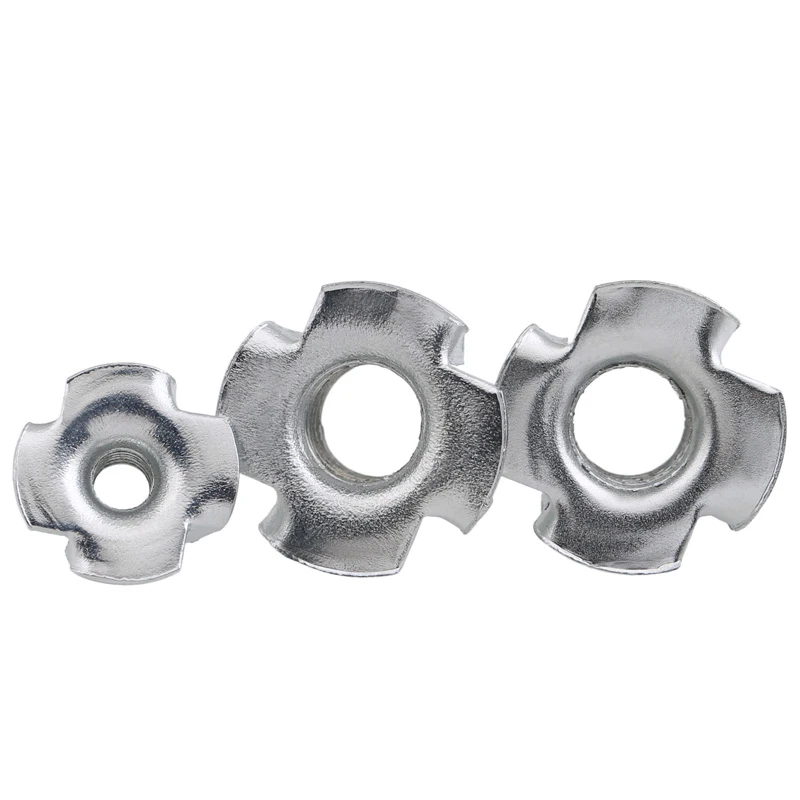 Т-образная гайка M4 M5 M6 M8 M10, метрические резьбовые оцинкованные вставки, тройник с потайным зубцом, гайка с четырьмя зажимами, оборудование для деревянной мебели