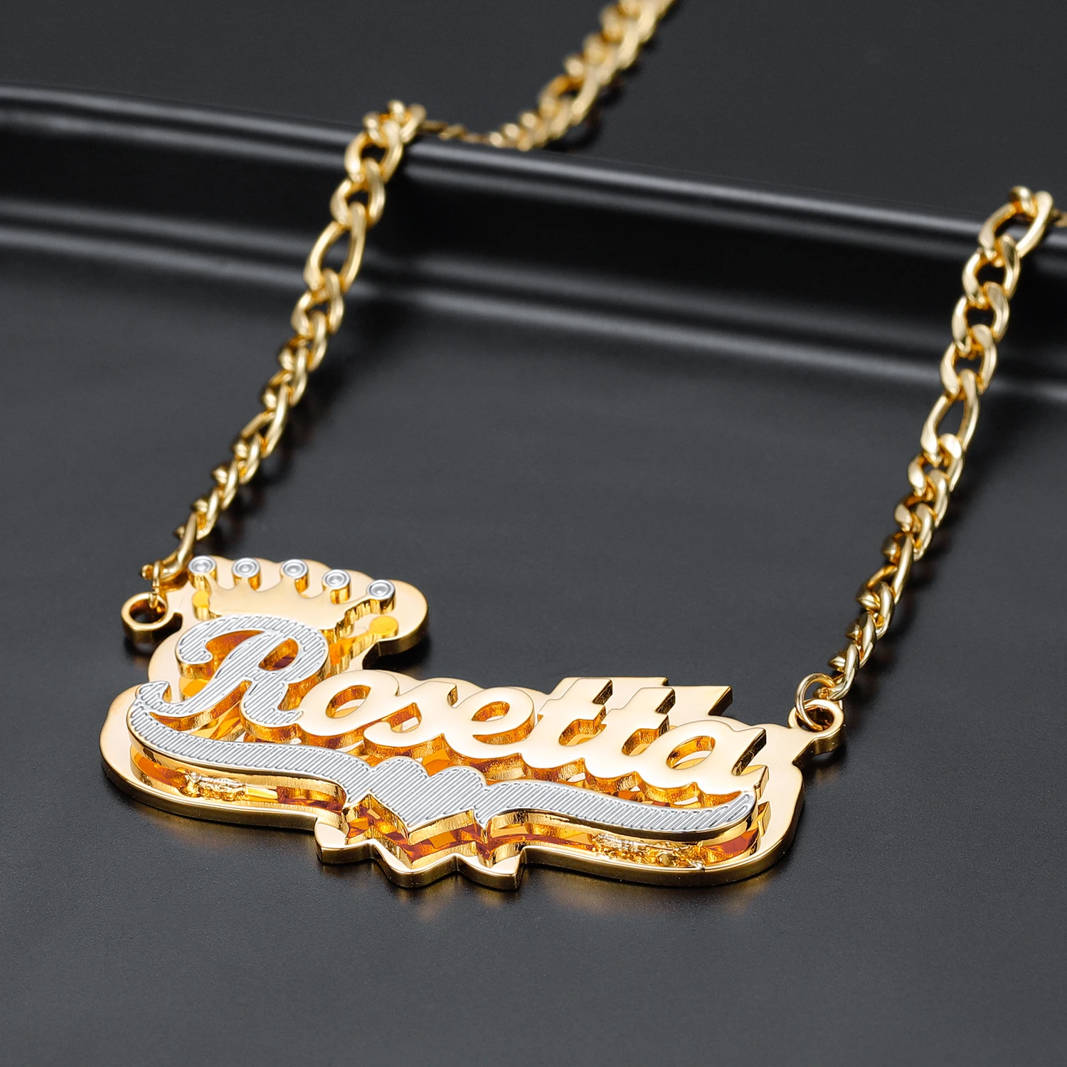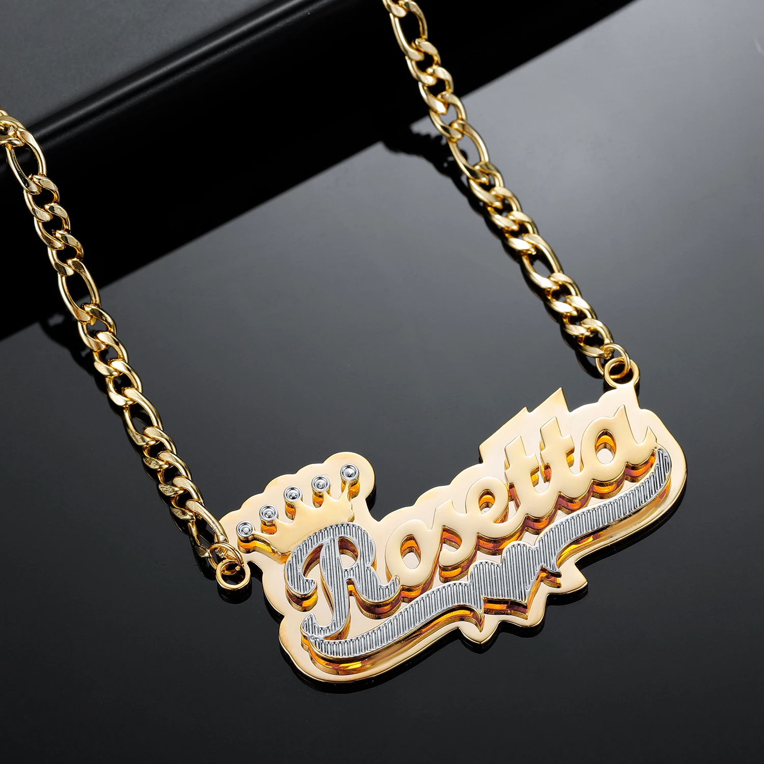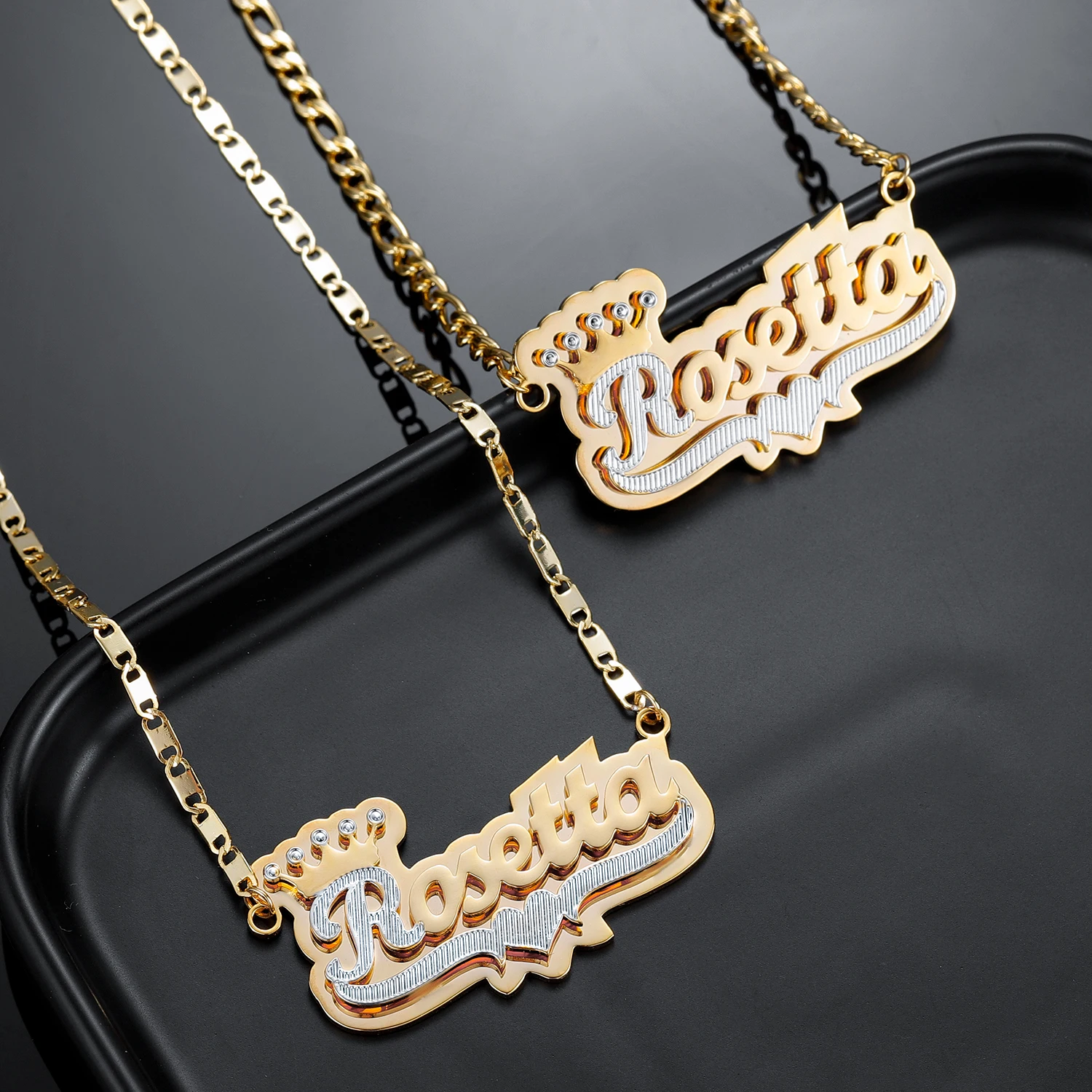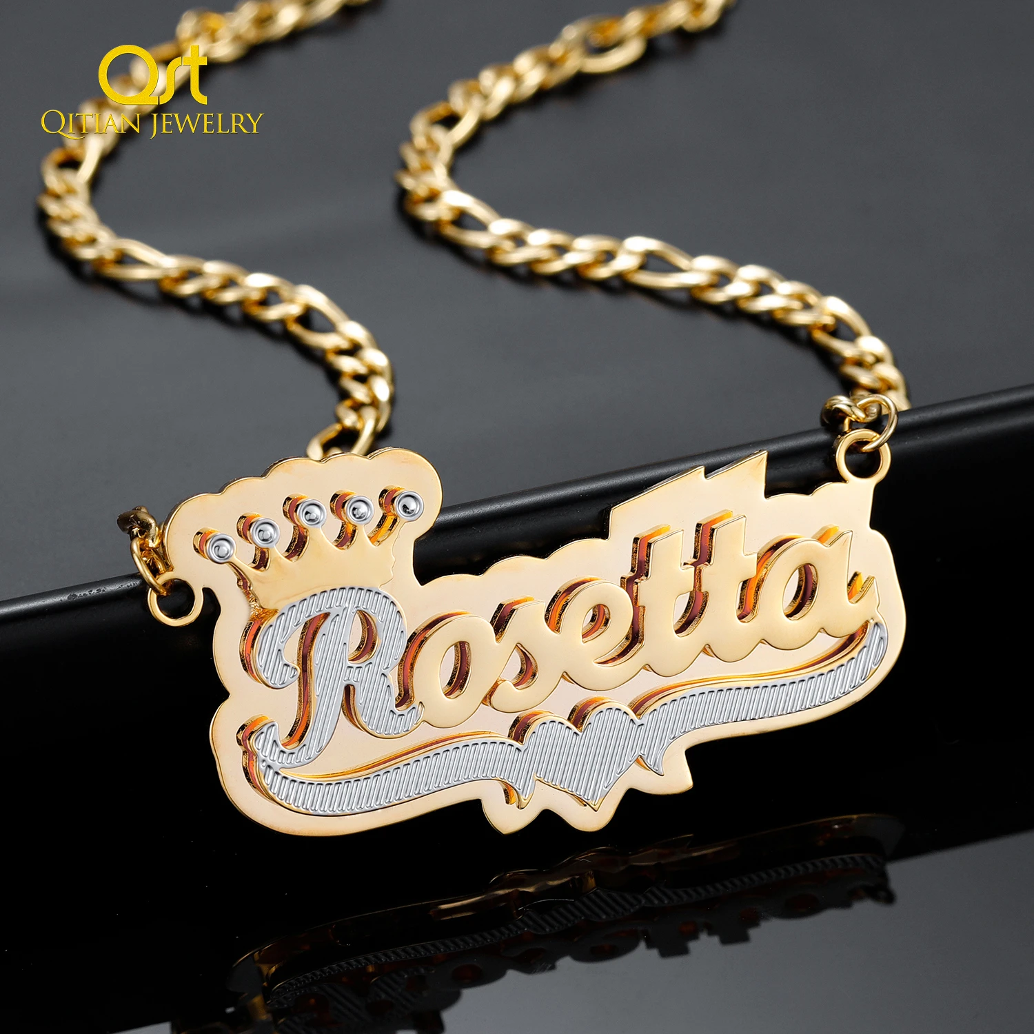 Индивидуальное ожерелье с именем короны, двухименная подвеска, золо...
