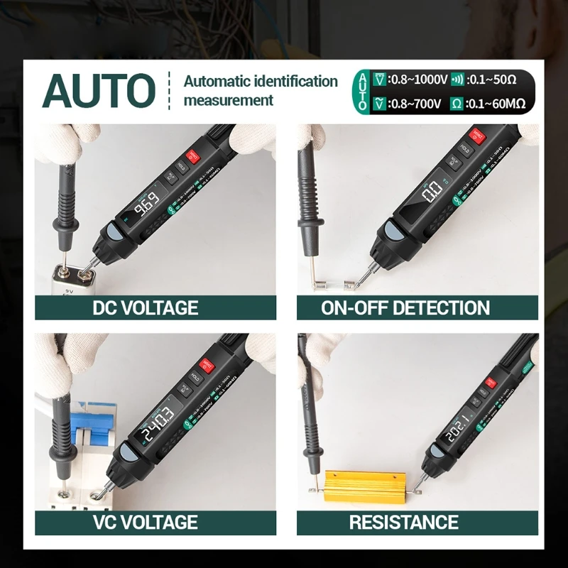 A3008 цифровой 6000 отсчетов Интеллектуальный профессиональный мультиметр сенсорная ручкаОсобенности: 6000 расчетов, цифровой мини-умный мультиметрОпределение последовательности фазОбнаружение индуктивности NCVСопротивление/ЕмкостьДиод/Обнаружение под напряжением/ГцСпецификация: напряжение тока цифры: 0,8 ~ 1000 вНапряжение переменного тока: 0,8 ~ 700 вСопротивление: 0,1 ~ 60 МОмЕмкость: 10 нФ ~ 60 МФЧастота: 1 Гц ~ 10 МГцТемпература: -20 ℃ ~ 50 ℃ (0 ℉ ~ 122 ℉)Диод: 3,0 вЗуммер: 0,5 ~ 5ΩПитание: 1 батарейка AAA (не входит в комплект)Посылка входит: 1 мультиметр.Примечание: возможны отклонения в 0-1 см из-за ручного измерения. Перед размещением заказа, пожалуйста, внимательно ознакомитесь со всеми условиями.Из-за разницы между различными мониторами изображение может не отражать реальный цвет изделия. Спасибо!