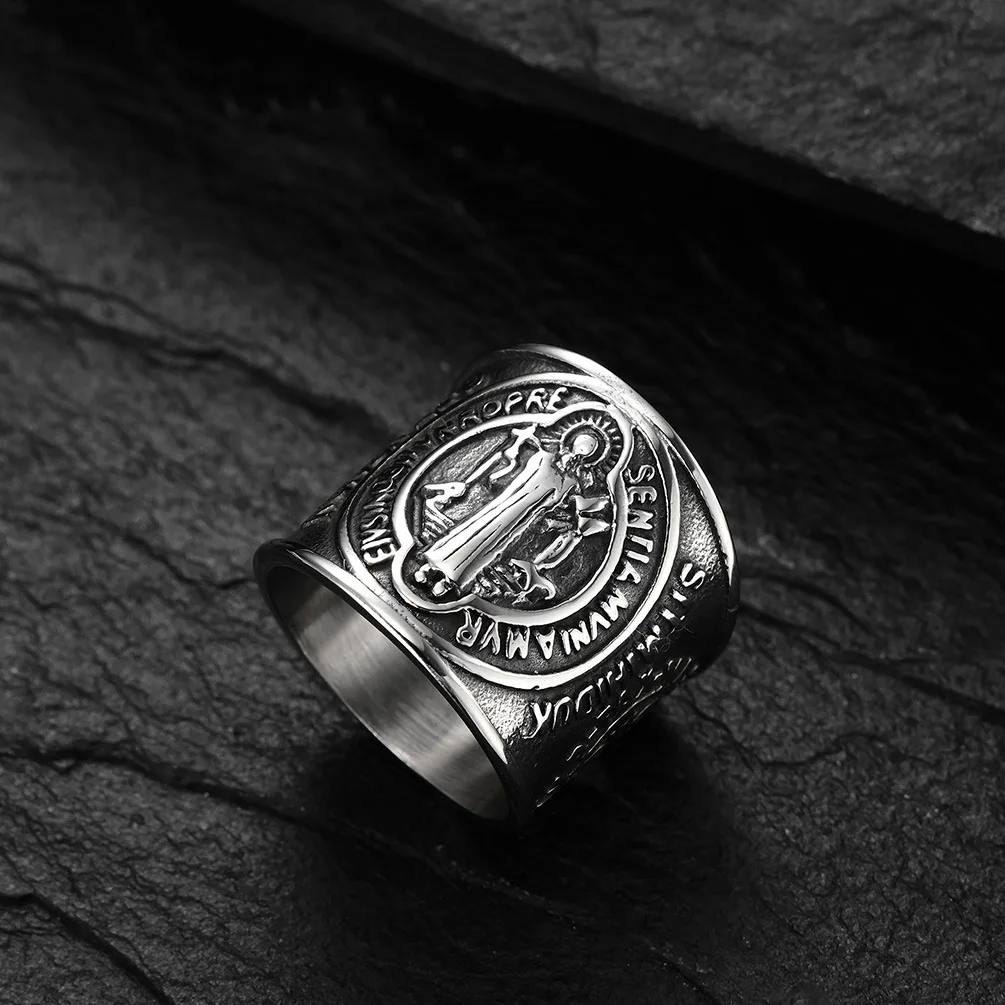 Мужское Винтажное кольцо из нержавеющей стали, широкое кольцо в стиле панк с изображением Святого Бенедикта, изготавливающее зло духа, Ювелирное Украшение в стиле ретро, 21,5 мм