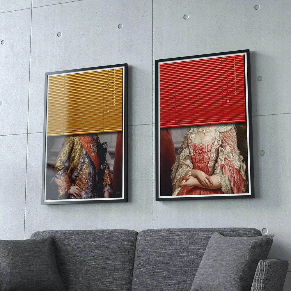 Муж и жена за экраном диптих плакат на холсте живопись абстрактная Поп-Арт картина для гостиной домашний декор
