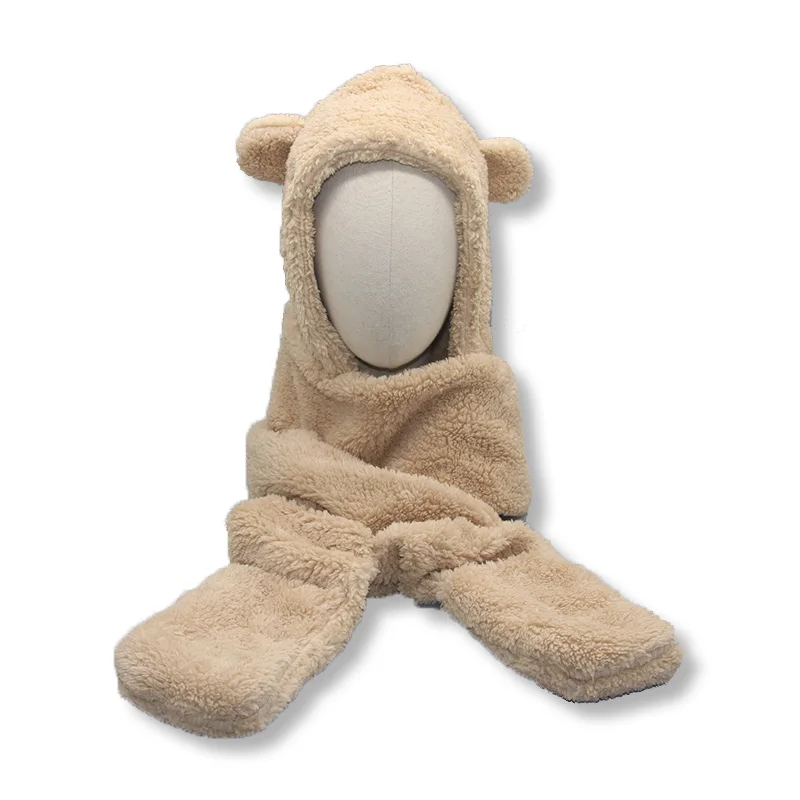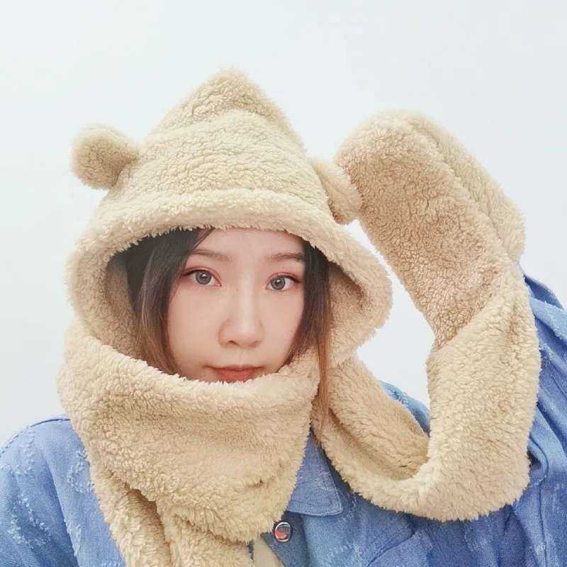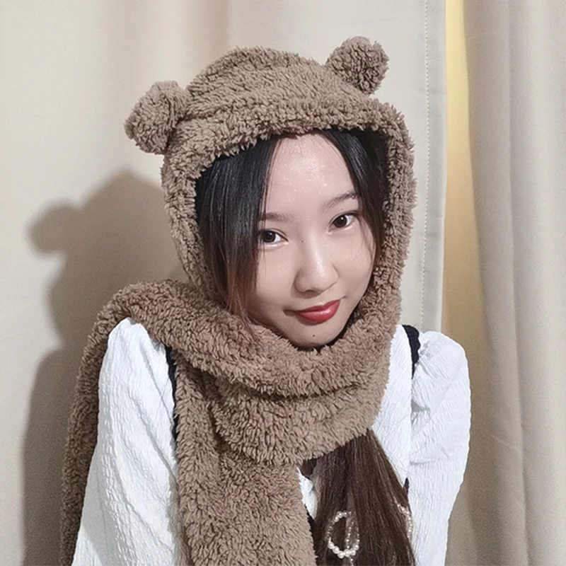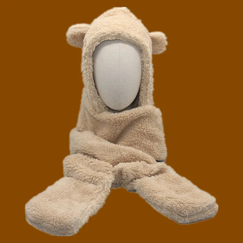 Зимние шапки, шапка с ушками, шарф, двойной утепленный милый медведь, теплые береты из ягненка, Повседневная зимняя уличная сохраняющая тепло женская шапка