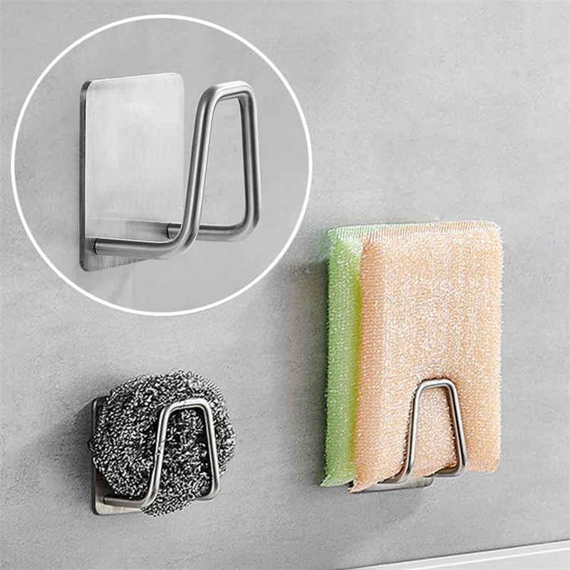 Держатель для губки из нержавеющей стали, стойка для хранения шариковой тряпки из нержавеющей стали без отверстий, настенная вешалка для хранения, органайзер для кухонных и ванных принадлежностей