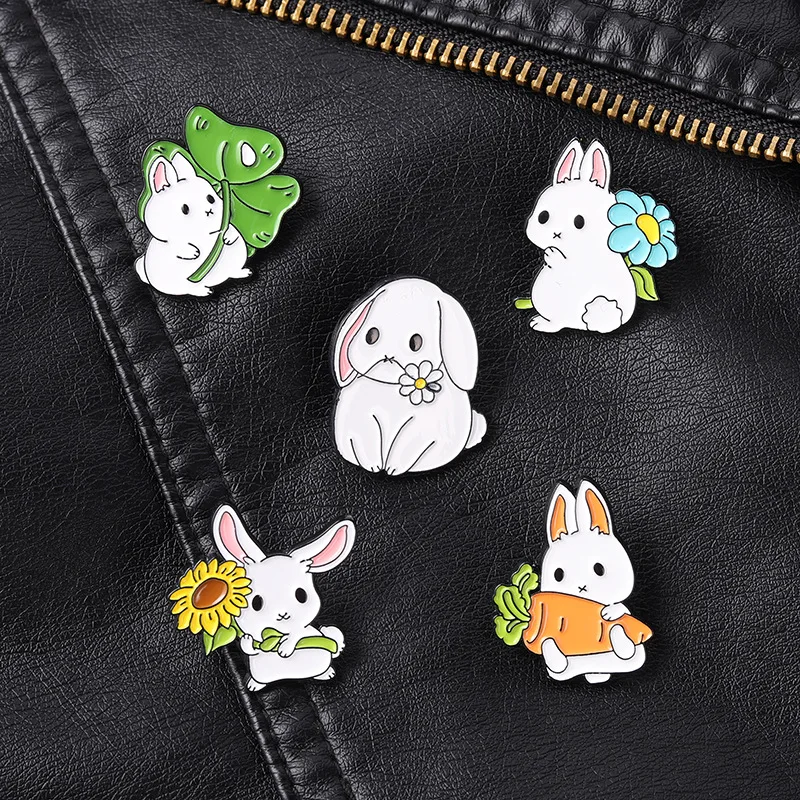 Эмалированные булавки с цветами, растениями, кроликами, Симпатичные...