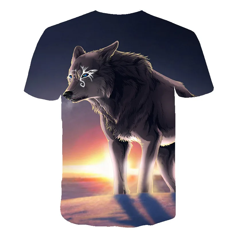 Летняя детская одежда, футболка с 3D-принтом волка, Детская футболк...