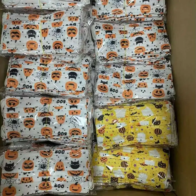 Маски одноразовые трехслойные с рисунком тыквыэльфа, 50100 шт.