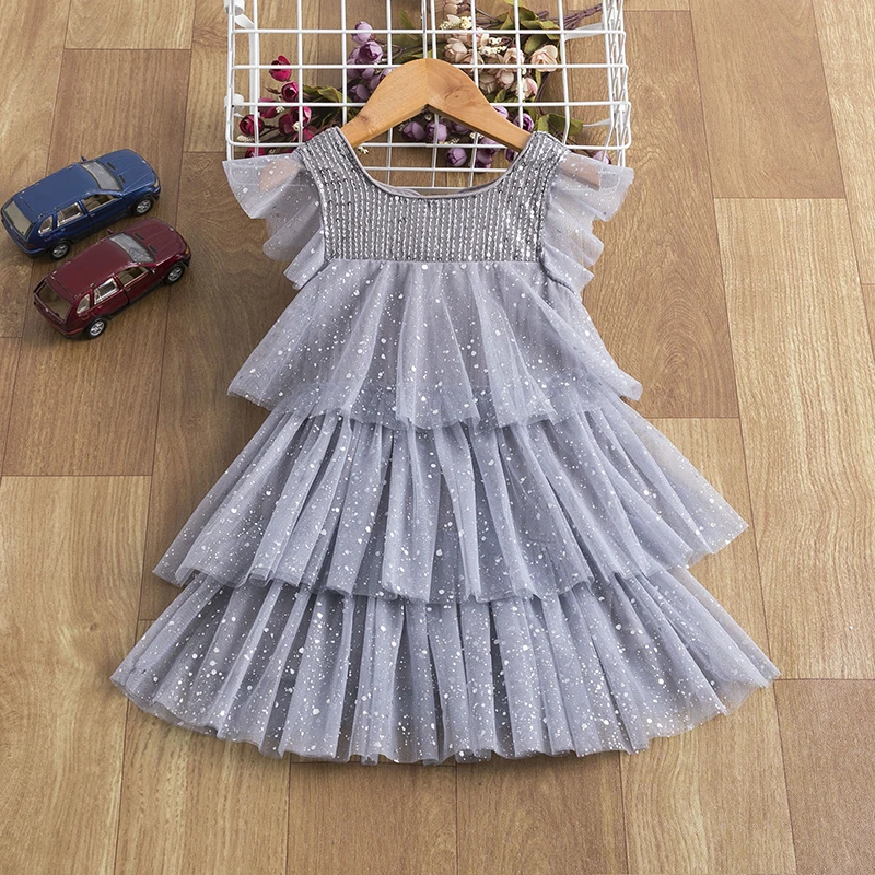 Детская одежда, платье-пачка с рукавами с оборками для девочек, летнее платье принцессы, маленькое платье для девочек на день рождения, свадьбу, платье из тюля для фотографий