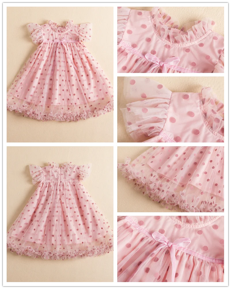 Детские платья принцессы для девочек, Тюлевое летнее платье в горош...