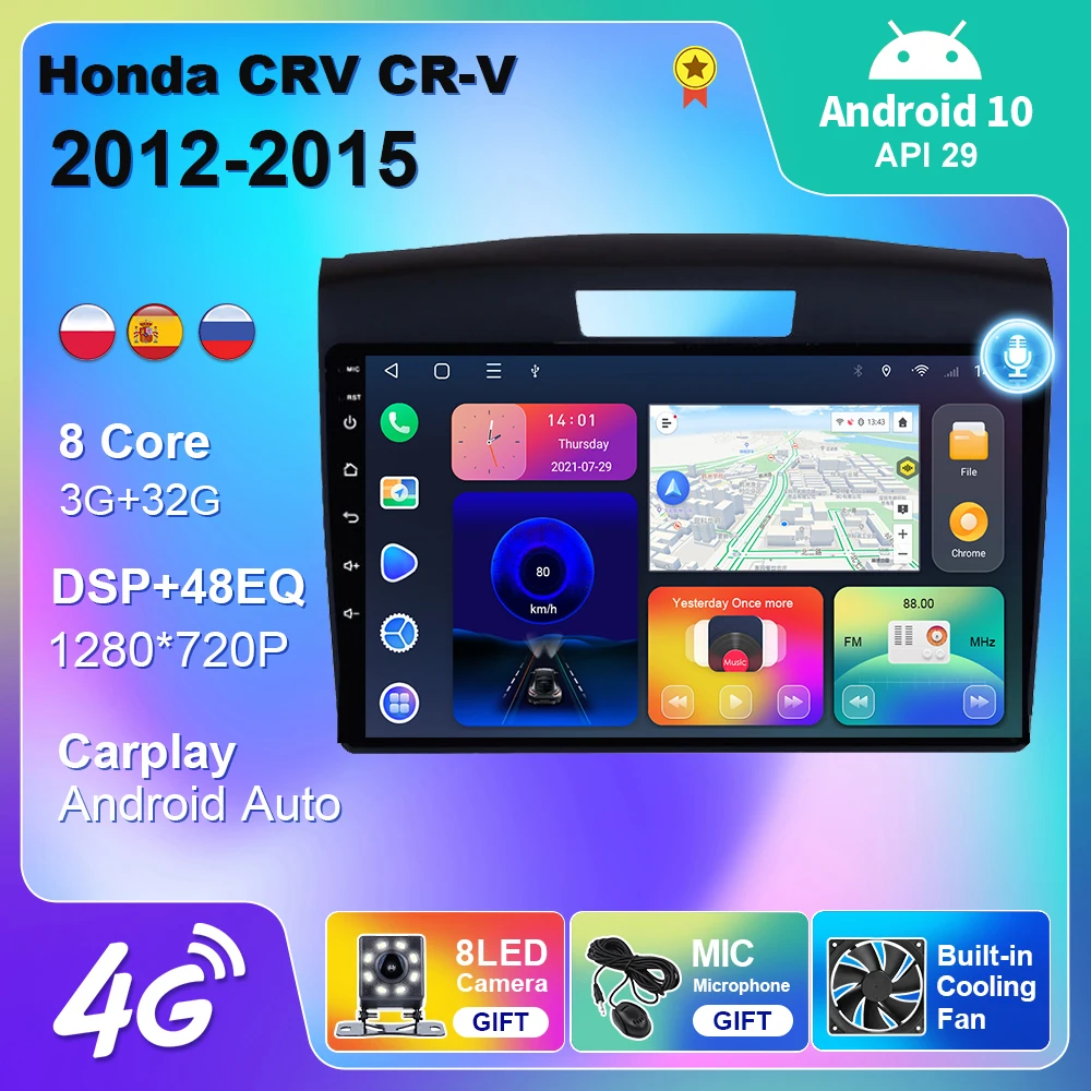 4G для Honda CRV CR-V 2012 2013 2014 2015 автомобильное радио, мультимедийный плеер, навигация, автомобильный Android, Carplay, 2din, Android 10, без DVD