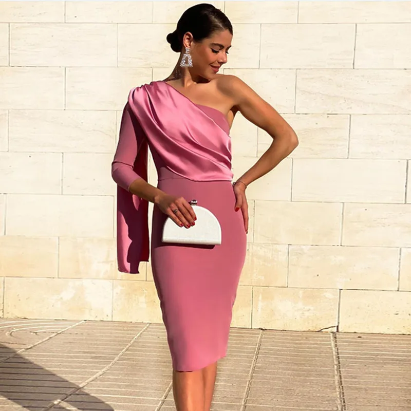 Элегантные коктейльные Вечерние платья на одно плечо с длинным рукавом до колена высококачественные официальные платья 2021 robe de mariage