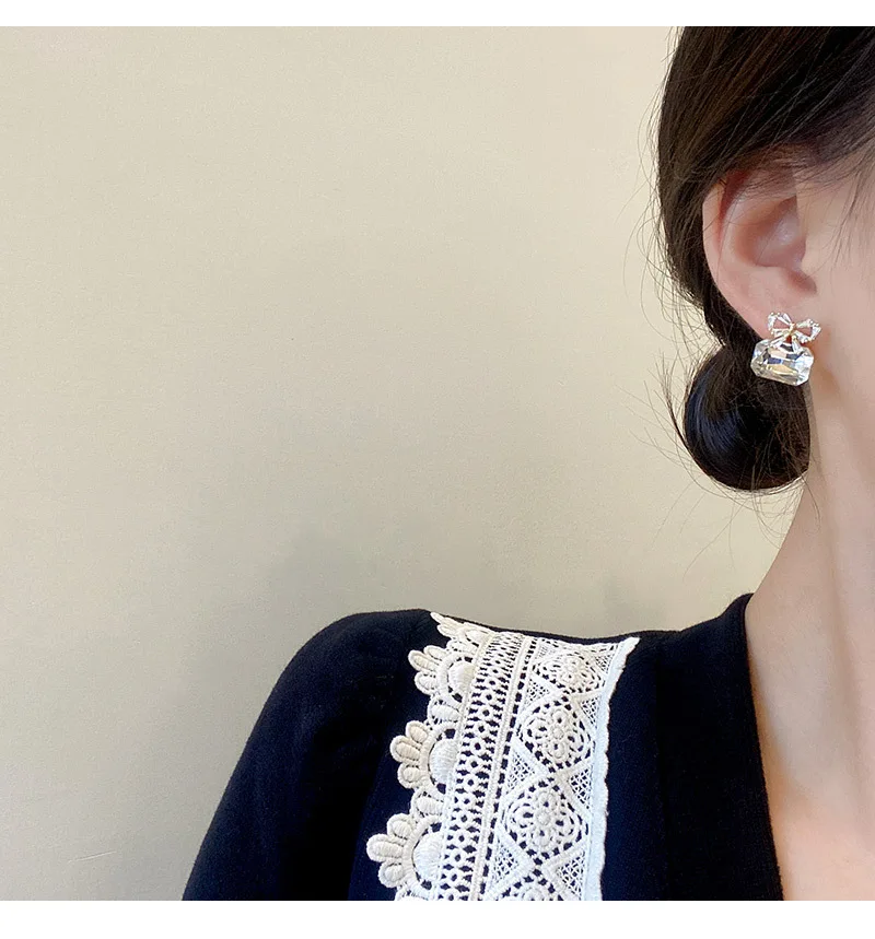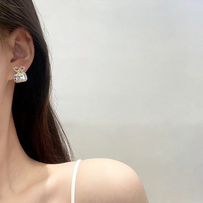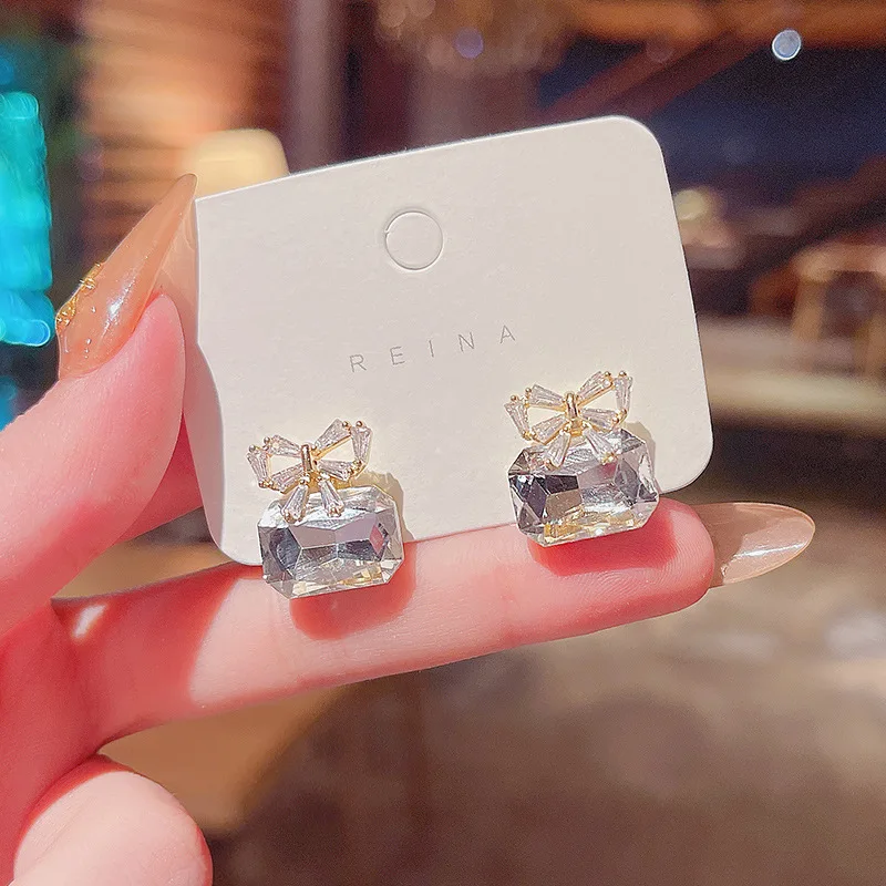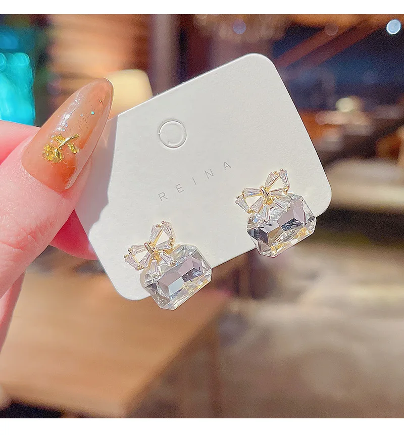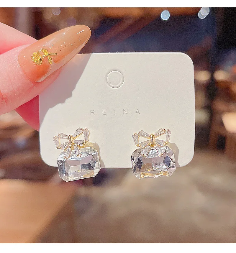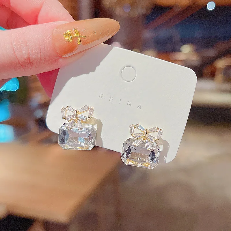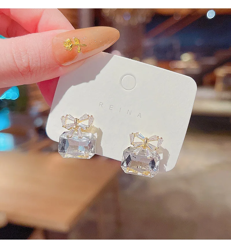 2021 новые ювелирные изделия, модные серьги-банты с кристаллами, квадратные серьги с бантом для женщин, красивый подарок