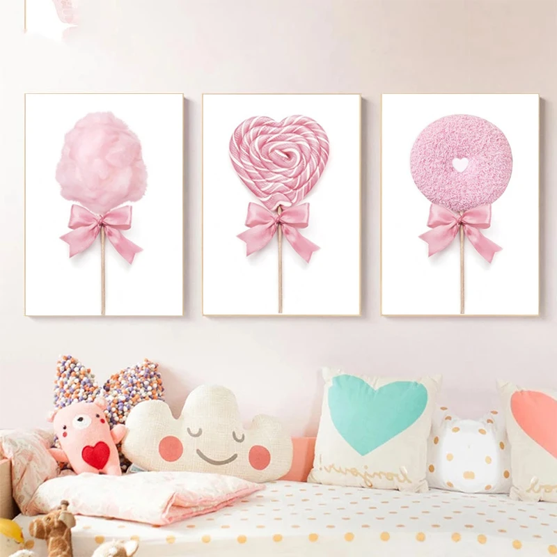 Хлопковая Конфета розовый скандинавский Lollypop пончик Картина на холсте постеры принты настенные картины для девичьей комнаты десерт магазин домашний декор icon star icon star icon star icon star icon star