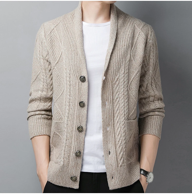 Высококачественный классический однотонный кардиган, Мужской осенне...