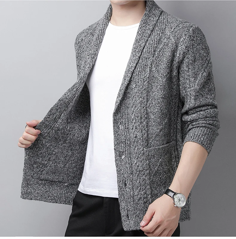 Новинка 2022, кардиган, мужской шерстяной свитер на осень и зиму, пальто, куртка, облегающий трикотажный джемпер, мужской свитер, пальто, мужская одежда Y318