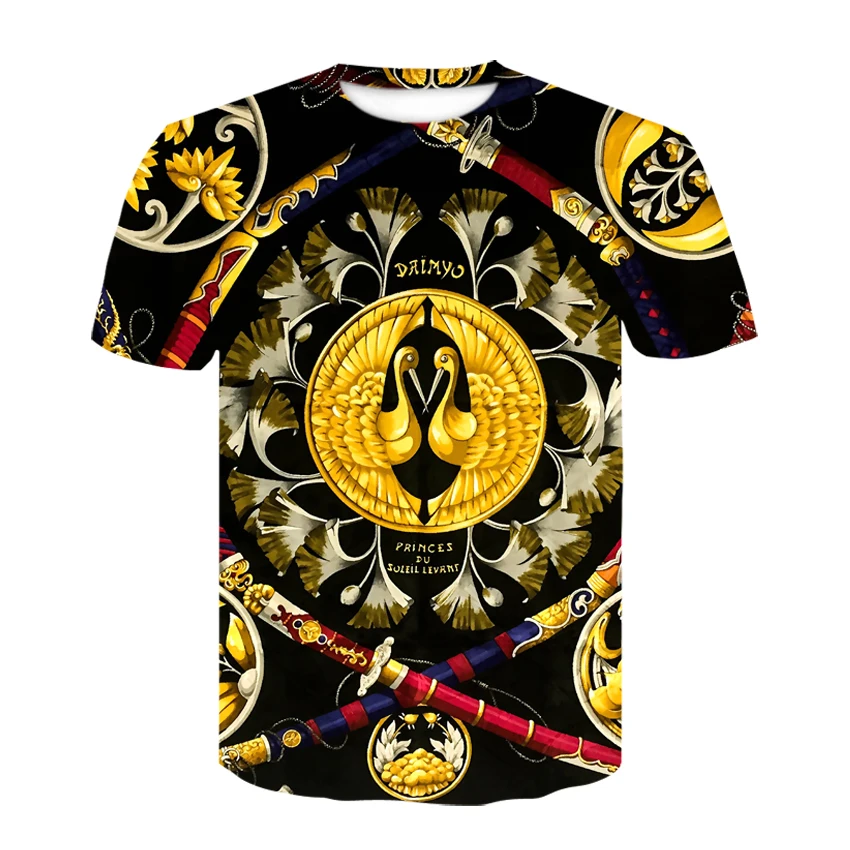 Футболка унисекс, с 3D золотым цветочным принтом короны, роскошные брендовые футболки в стиле барокко, летняя одежда, модная футболка, топы в стиле Харадзюку