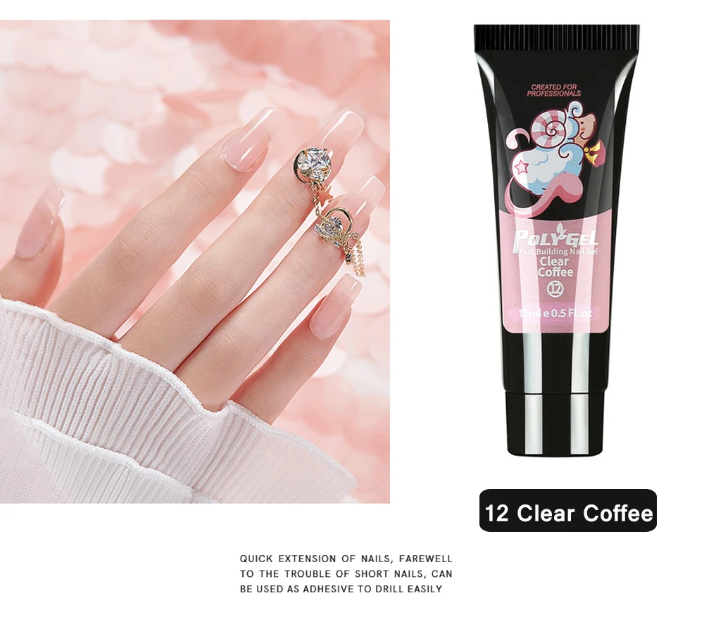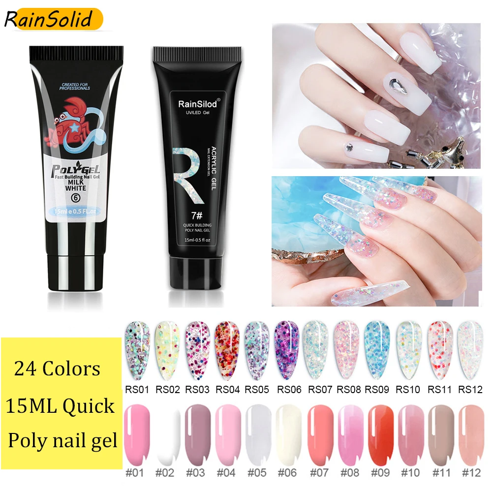 15 мл УФ светодиодный акриловый гель для маникюра, 24 цвета, полигель для быстрого наращивания, прозрачный блеск для ногтей