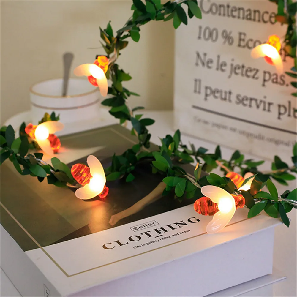 Рождественская гирлянда из ротангарозыпчелышариков, питание от USB или аккумулятора, сказочное украшение для дня рождения, свадьбы, вечеринки, 2 м, 10 светодиодов