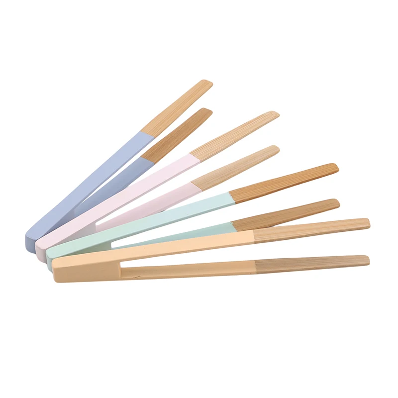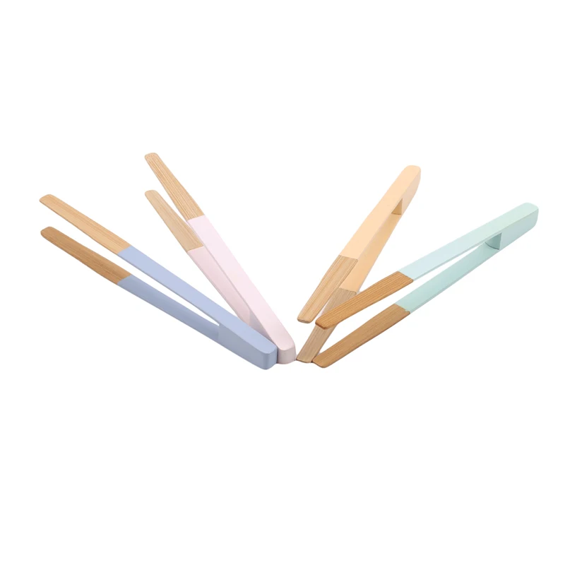 Синие желтые бамбуковые кухонные щипцы Пищевые Инструменты для барбекю салат бекон стейк хлеб торт деревянный зажим домашняя кухонная утварь