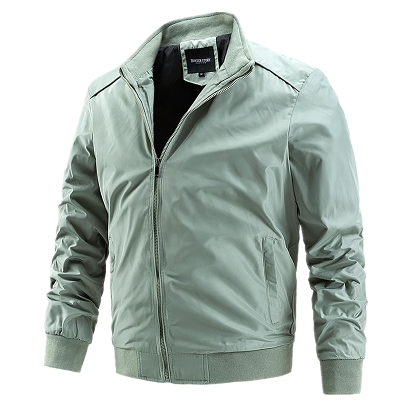 Ветровка мужская Спортивная, однотонная простая куртка-бомбер, приталенный силуэт, в стиле милитари, повседневный и деловой стиль, Осень-зима