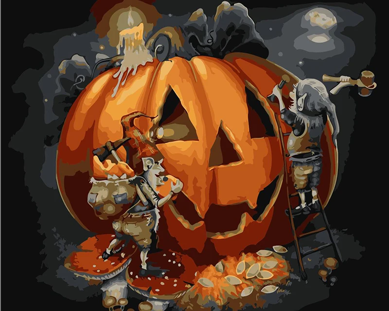 Картина для рисования по номерам череп "сделай сам", вышивка крестиком, ужас, тыква, искусство, 5D, цифровая живопись, мозаика, домашний декор, подарок на Хэллоуин