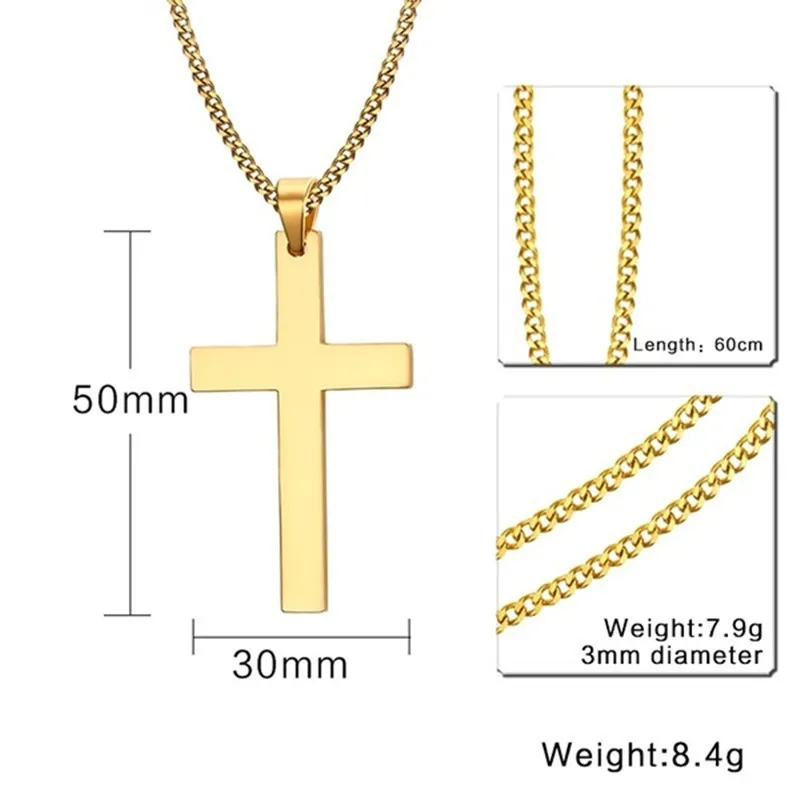 Классические ожерелья с крестом для мужчин, цепочка из нержавеющей стали с золотыми звеньями, ожерелье, молитва, христианские украшения, подарки для парня