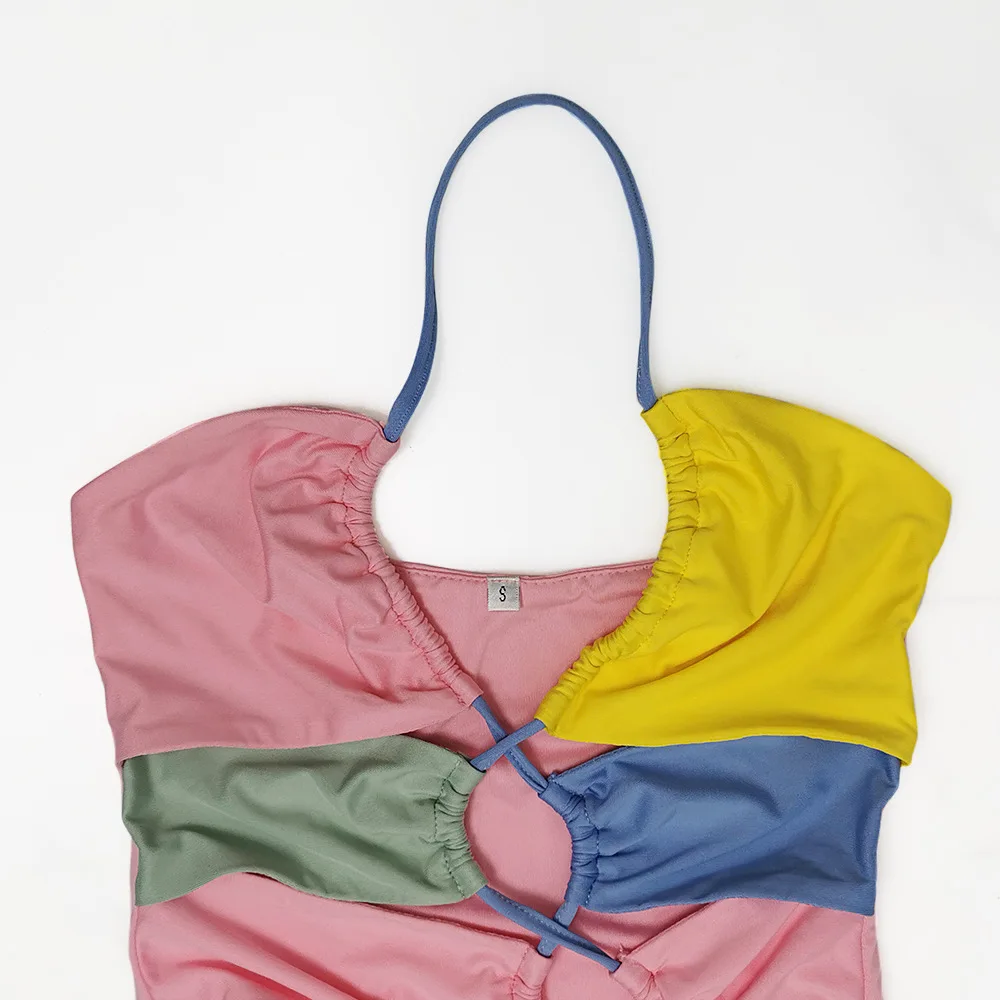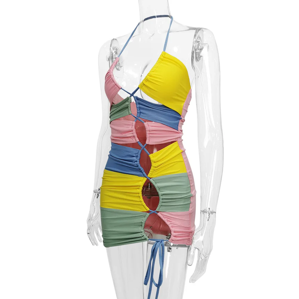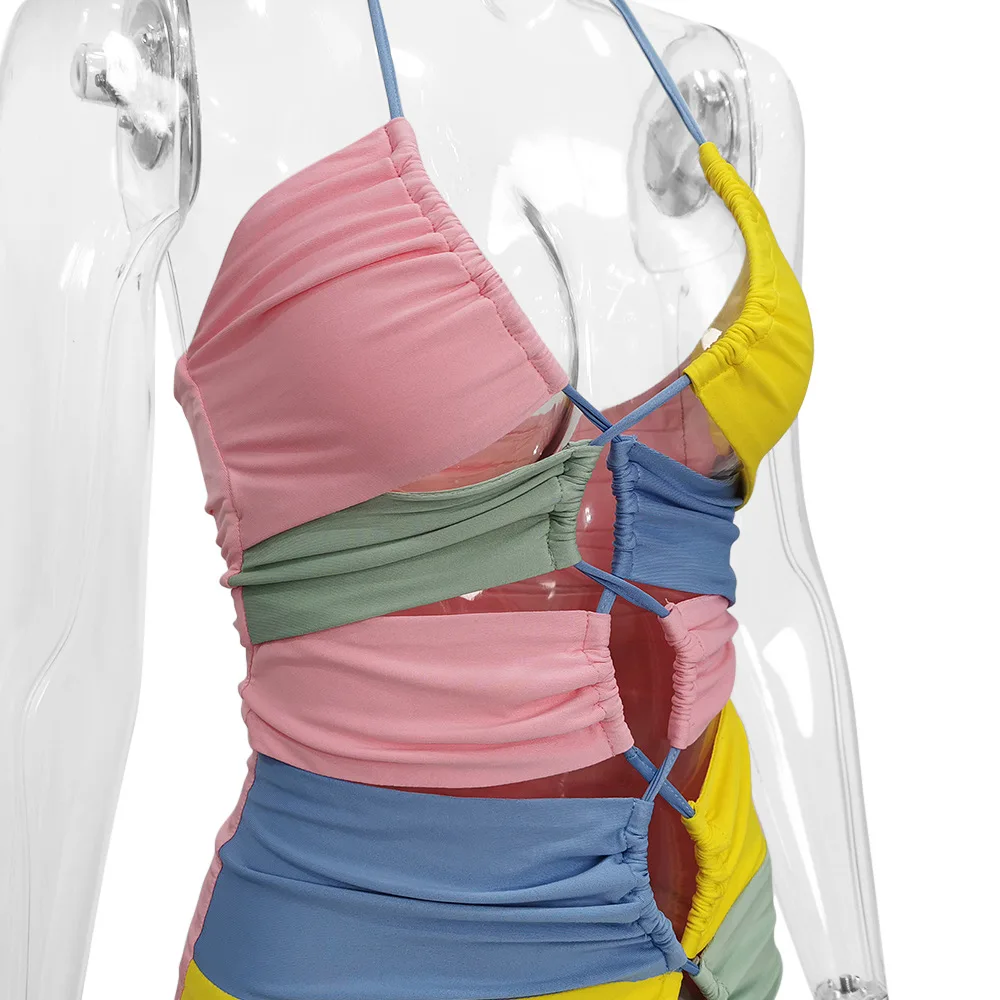 Karlofea Двухслойное лоскутное трикотажное облегающее мини-платье ж...
